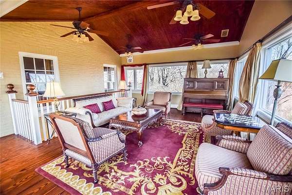 This is Rackheath! This wonderful home sits on the bluffs of the Mississippi River on 4+ acres with incredible views of the river valley. The home was built in 1860 and has been updated and re-sized to accommodate todays lifestyle. The first floor has an amply sized living/dining combination, a green house w/hot tub and kitchen with center island. Additionally the first floor has a bedroom with it's own full luxury bath and a common sitting area. The second level has 2 more bedrooms each with it's own bath and a common area/sitting/tv room with incredible views on 3 sides. The large outdoor patio area has views of the grounds and are of an English garden, landscaped and manicured shrubs, pathways and statuary. Can you find the secret garden with the oversized chess set?