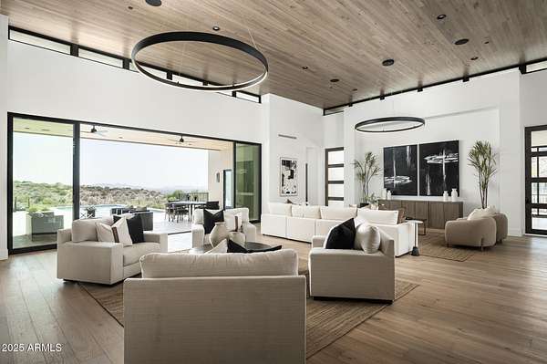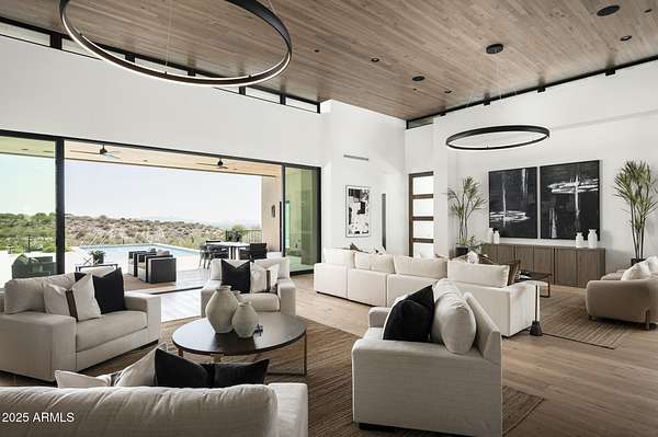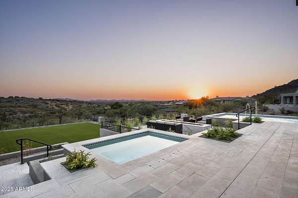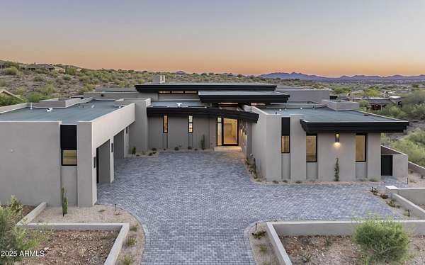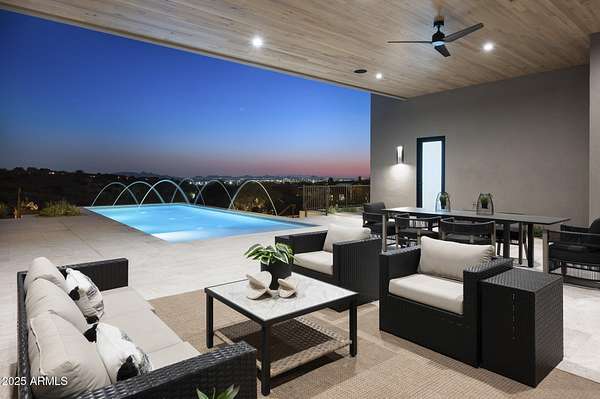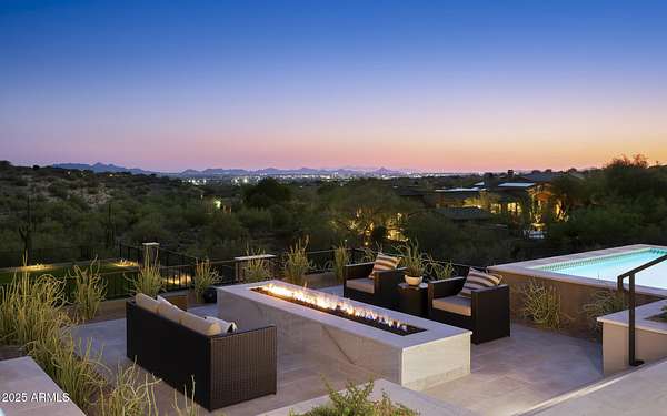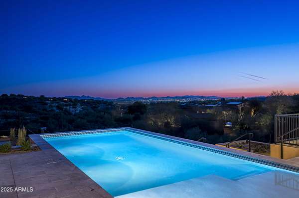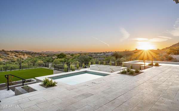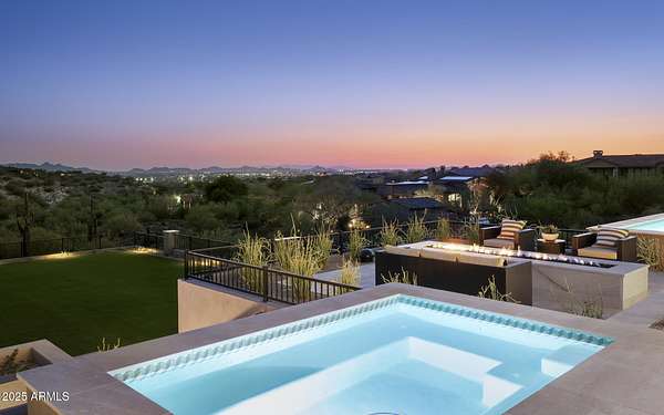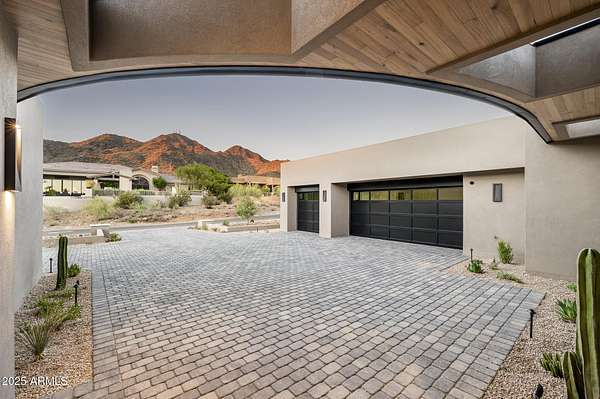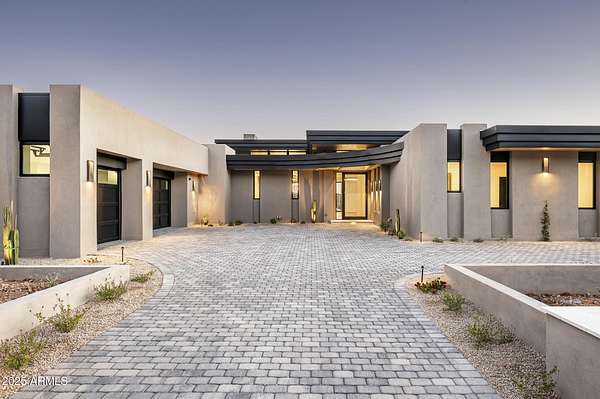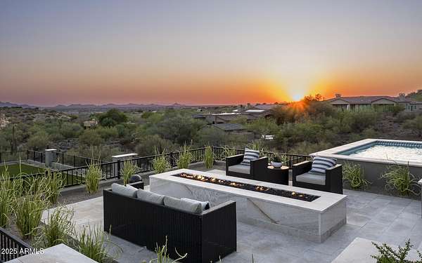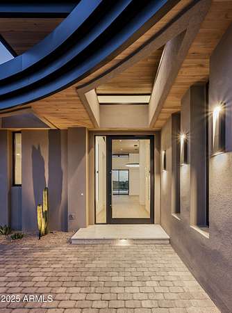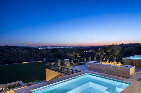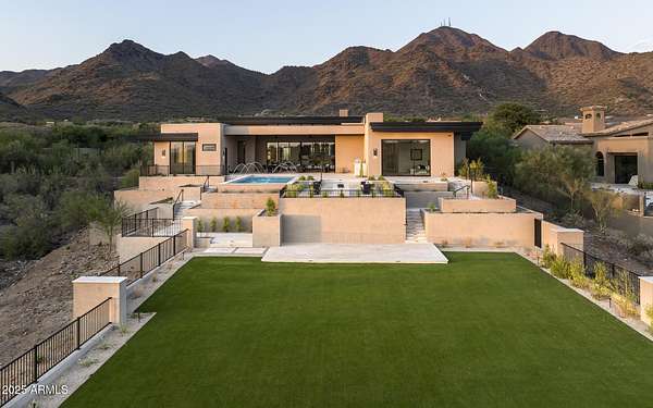 New construction-finishing July 2025! Rare in-town new build with preserve access, sweeping mountain and city light views, privacy and expansive outdoor space. Located in a guard gated 227-home community with quality amenities, this 6,470 SF single-level home sits on a private 1.6-acre cul-de-sac lot backing to the McDowell Sonoran Preserve - yet is very close to top-rated public and private schools, cultural activities, dining, golf, trail systems, & 101 freeway access. Designed by Swaback Partners, the home showcases Sophisticated Modern architecture with timeless, high quality finishes: wide-plank oak floors, custom cabinetry, designer fixtures, clerestory windows, tongue-and-groove ceilings, and 10' glass sliders throughout. Chef's kitchen includes dual islands, Wolf/S ub Zero appliances, 72" fridge/freezer, 30" wine center, large walk-in pantry and adjacent entry/mudroom. Featuring 4 en-suite bedrooms, plus private office, bonus/media room, separate dining, powder room, and pool bath with exterior access. Multiple outdoor living areas: upper patio with elevated pool, spa, 14' linear firepit area, 12' built-in BBQ; Large patios off the Dining and Bonus Rooms, plus a massive 5000+ sq.ft. lower yard with Turf providing ample space for family activities and events.. Garage offers 3 oversized bays, high ceilings, EV-ready outlets, and lift capability. Expandable home automation including whole home prewire, dedicated media closet, camera system, indoor/outdoor speaker system, Sonos audion system, and numerous wifi enabled systems New home with builder warranty, expected to be complete by mid July. Features, amenities, and upgrades are too numerous to list.