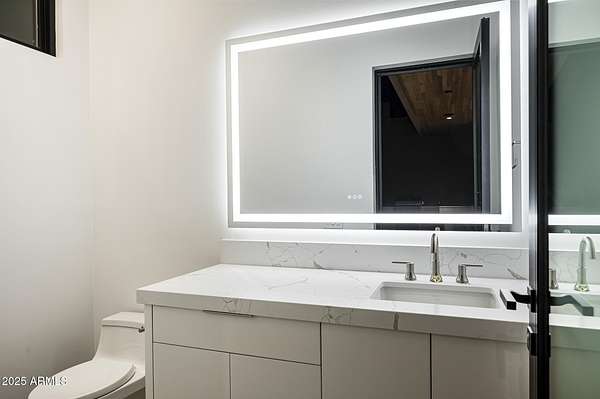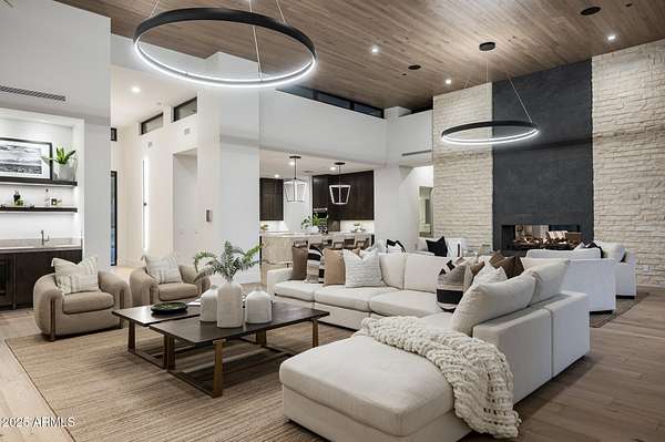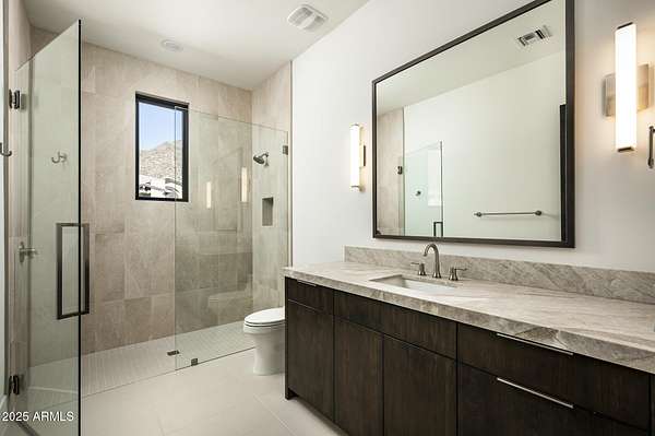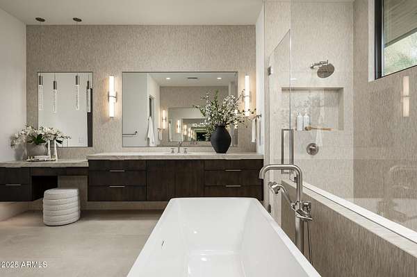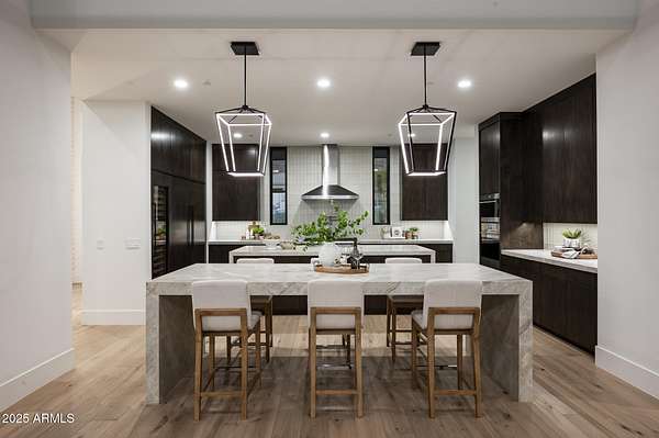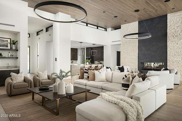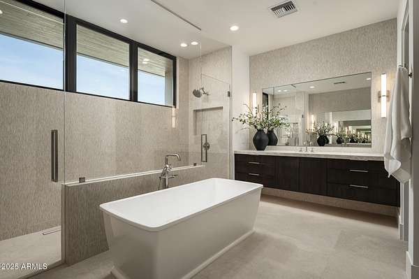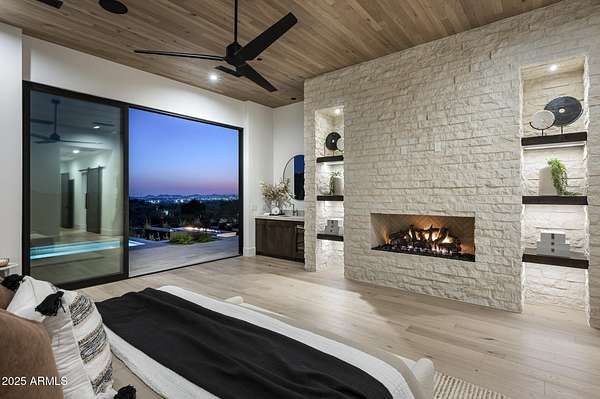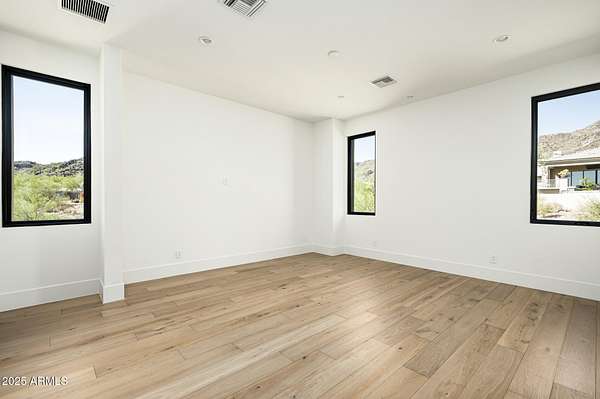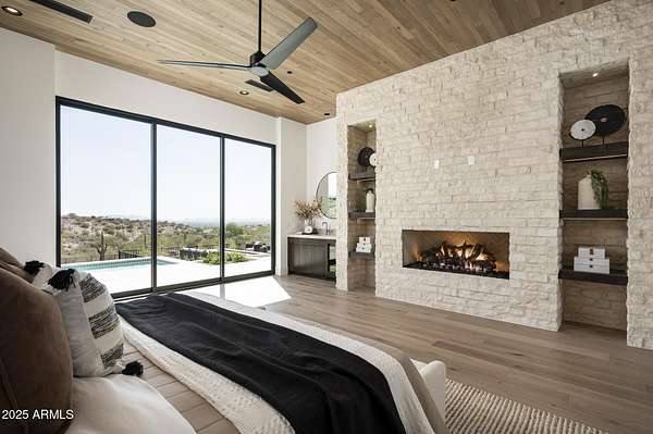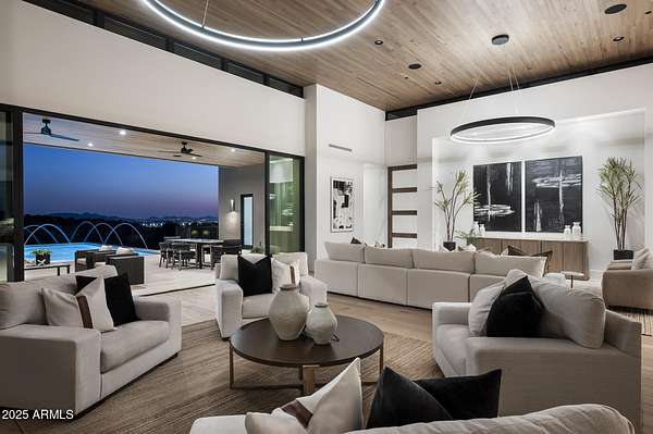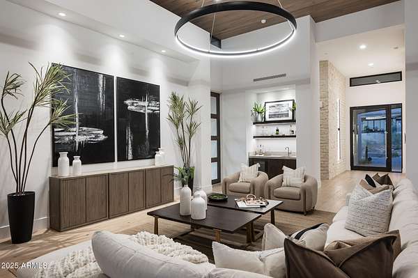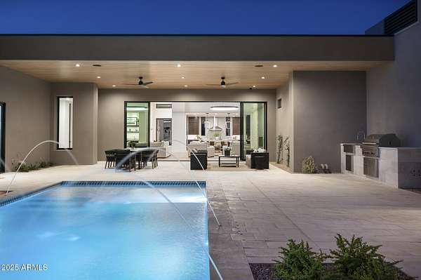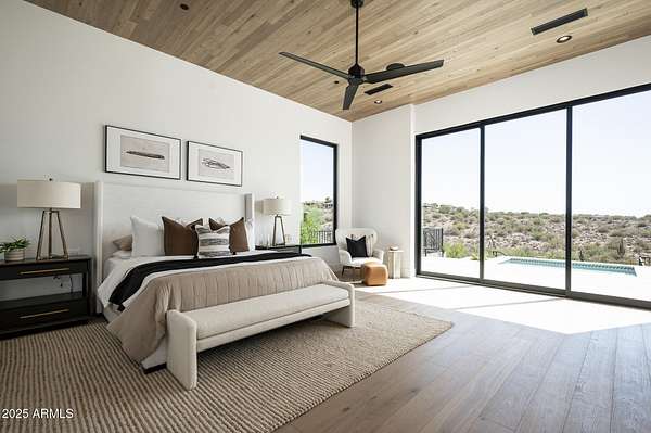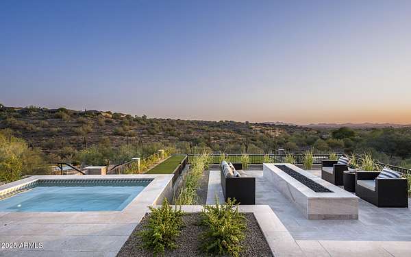 New construction-finishing July 2025! Rare in-town new build with preserve access, sweeping mountain and city light views, privacy and expansive outdoor space. Located in a guard gated 227-home community with quality amenities, this 6,470 SF single-level home sits on a private 1.6-acre cul-de-sac lot backing to the McDowell Sonoran Preserve - yet is very close to top-rated public and private schools, cultural activities, dining, golf, trail systems, & 101 freeway access. Designed by Swaback Partners, the home showcases Sophisticated Modern architecture with timeless, high quality finishes: wide-plank oak floors, custom cabinetry, designer fixtures, clerestory windows, tongue-and-groove ceilings, and 10' glass sliders throughout. Chef's kitchen includes dual islands, Wolf/S ub Zero appliances, 72" fridge/freezer, 30" wine center, large walk-in pantry and adjacent entry/mudroom. Featuring 4 en-suite bedrooms, plus private office, bonus/media room, separate dining, powder room, and pool bath with exterior access. Multiple outdoor living areas: upper patio with elevated pool, spa, 14' linear firepit area, 12' built-in BBQ; Large patios off the Dining and Bonus Rooms, plus a massive 5000+ sq.ft. lower yard with Turf providing ample space for family activities and events.. Garage offers 3 oversized bays, high ceilings, EV-ready outlets, and lift capability. Expandable home automation including whole home prewire, dedicated media closet, camera system, indoor/outdoor speaker system, Sonos audion system, and numerous wifi enabled systems New home with builder warranty, expected to be complete by mid July. Features, amenities, and upgrades are too numerous to list.