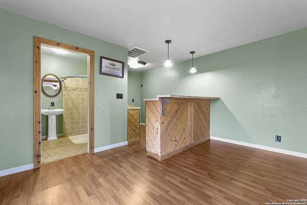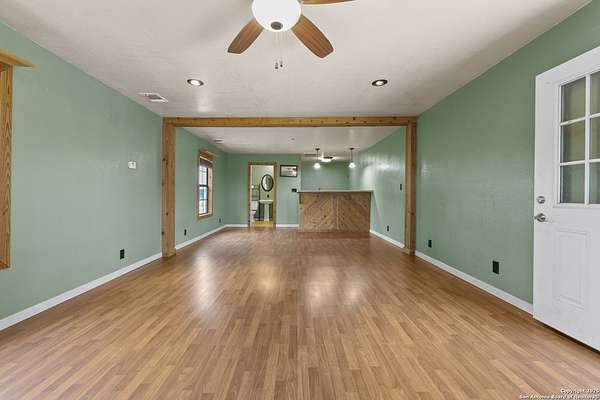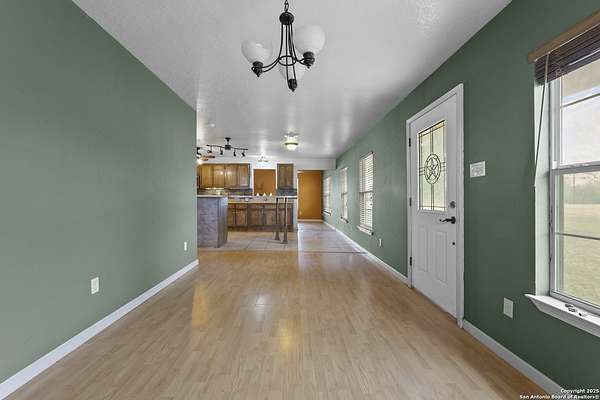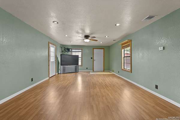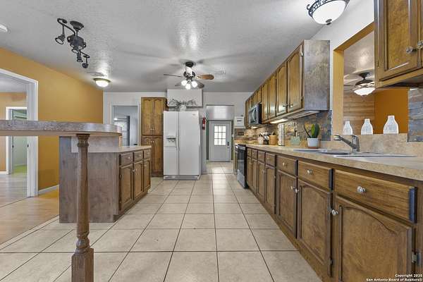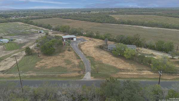 Set on nearly two acres, this Atascosa property offers wide-open space and flexible living. The main house features two bedrooms and a full bath, with bright living and dining areas ready for gatherings or quiet evenings at home. The kitchen is spacious and functional, offering plenty of cabinet storage and an extended counter that's perfect for meal prep or casual dining. You'll appreciate the large laundry room, making chores easy and keeping things organized. The bathroom includes double sinks and a combination tub and shower for extra convenience. Out back, a huge detached garage and shop provide room for oversized vehicles, equipment, or hobbies. The building is well-lit, open, and versatile, making it ideal for anyone needing extra storage, a workshop, or space for projects. Attached to the garage is a separate apartment-style suite, complete with its own bathroom and living area, offering privacy for guests, extended family, or even a home office. The property is fully fenced with a gated entrance, giving you peace of mind and plenty of room to enjoy the outdoors. There's space for gardening, outdoor activities, or simply soaking in the views of the surrounding land. If you're looking for a place with room to spread out and options for how you live, work, and play, this property is ready to welcome you.
