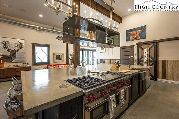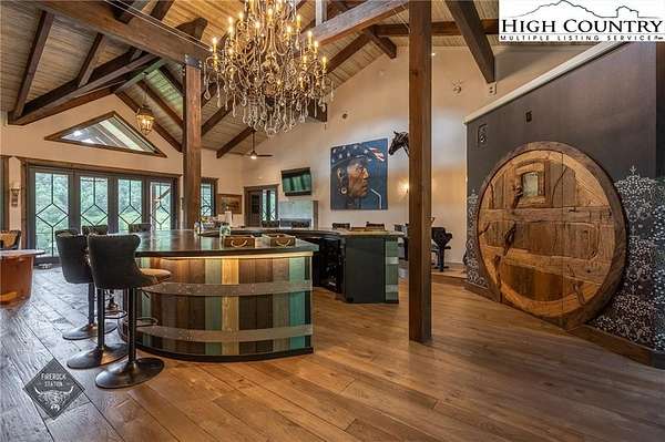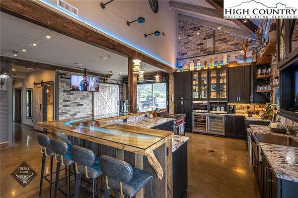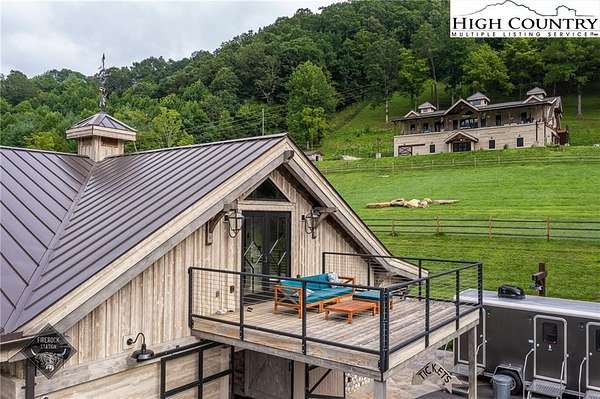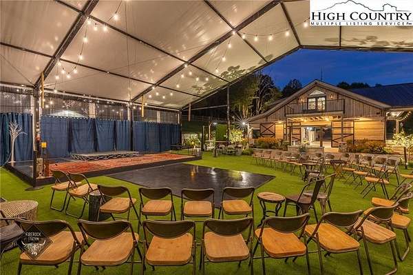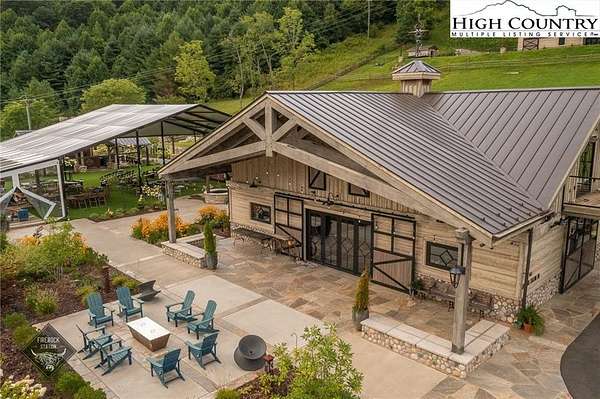 Seller Financing Available! Firerock Station, High Country's award winning venue is now for sale! Property includes 45 acres, a custom timber frame home and of course the event venue complete with all equipment & furniture! The home: First floor has a massive kitchen with a hand poured concrete island that you could literally have a dance party on. Dining area with gas fireplace, small sitting area, walk-in pantry, bonus room with en-suite including laundry as well as a lofted office space above. Take the elevator (should you wish) upstairs to the massive great room with cathedral ceiling, hand scraped oak flooring, horseshoe bar with reclaimed barn wood, game area with second gas fireplace, main laundry room, theatre room with 7 reclining theatre seats & projector screen, guest bedroom with en-suite plus additional sleeping space in the loft, impressive primary suite with an incredibly large marble shower, oversized jacuzzi tub with fireplace, multiple walk in closets as well as a personal gym. RV garage with two additional ATV garages & space for about 4 addtl vehicles as well as an insane amount of storage. Behind house is a fully fenced in yard that goes up to the ridge. The venue: Event barn with custom lighting & full kitchen, surround sound, multiple TVs, LED light up bar, two garage doors creating an indoor/outdoor space, public restrooms, storage for retail goods or event decor & mechanicals.. There are suites above w/bunk beds, private sleeping rooms, full baths & private balconies overlooking the grounds. Current occupancy for barn alone is 100. Restroom trailer allows for another 300 guests. Covered tent used for large events & providing protection from the elements, Covered pavilion with outdoor grill & kegerator for catering. Grounds: Property spans both sides of Hwy 321 and is a mix of pasture, woods & intricate landscaping as well as incredible creek frontage. Parking suitable for 60-70 vehicles. Lead listing agent is related to seller & seller is also a licensed NC broker.