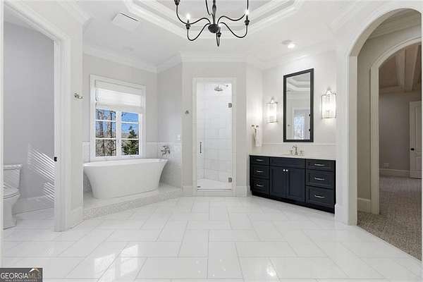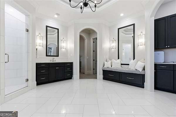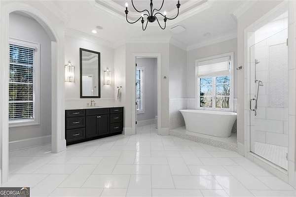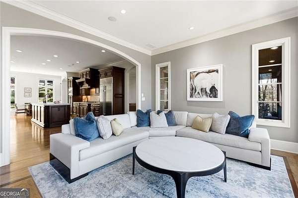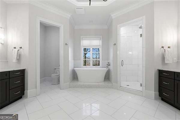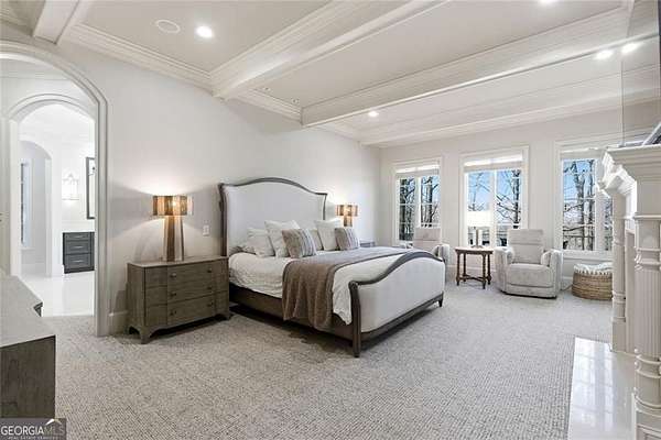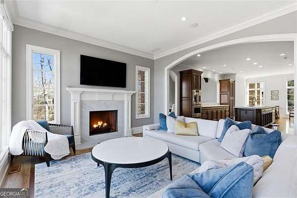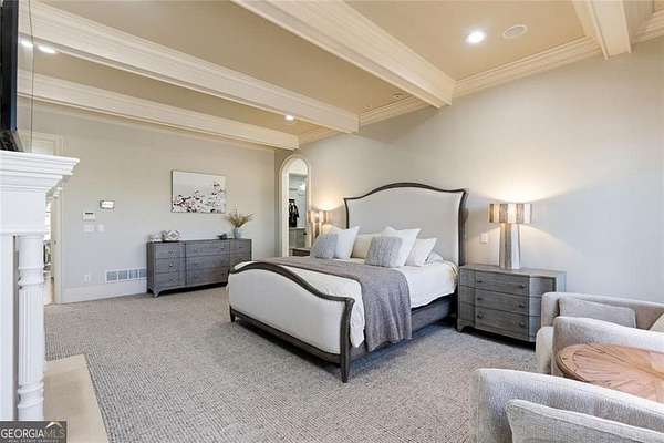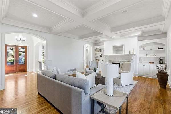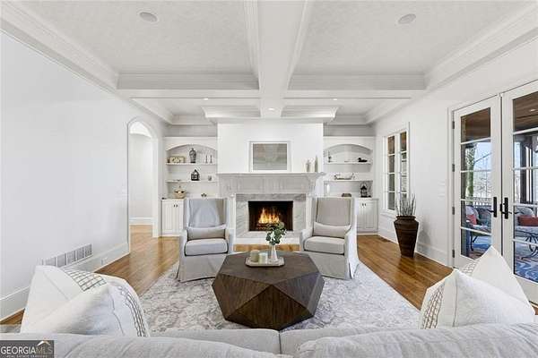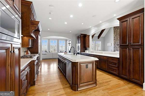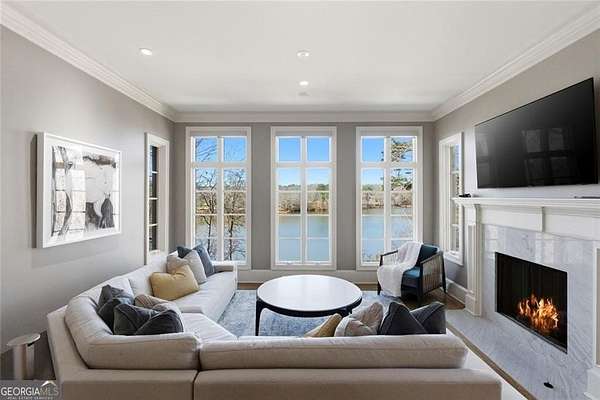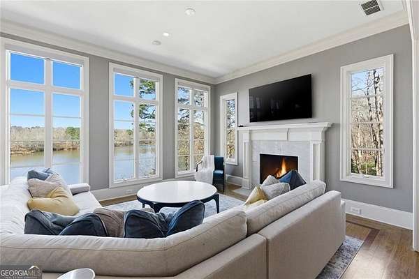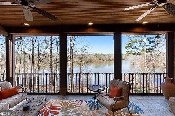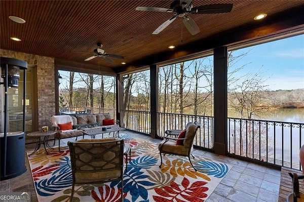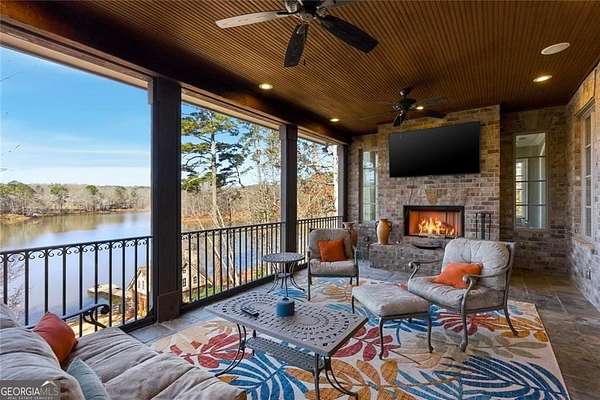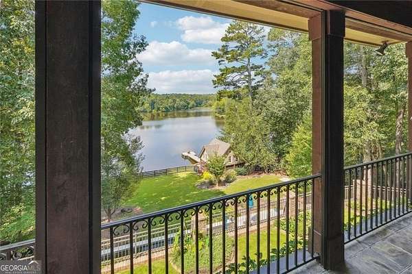 Situated on over 3 private acres along the shores of Allmond Lake, this approximately 7,250 square foot estate offers what may be the most breathtaking lake views in Alpharetta. Blending elegant French Provincial design with modern amenities, the property is located within Allmond Tree Farms and benefits from Cherokee County taxes while enjoying close proximity to downtown Milton and Alpharetta. The stunning residence features four bedrooms, two private home offices, five full bathrooms, and three half bathrooms. Recent updates include a new heated saltwater pool, a completely remodeled main-level primary suite, renovated kitchen and bathrooms, a new terrace-level theater room, executive office, and updated flooring. Detailed craftsmanship is evident throughout the home, with handcrafted cabinetry, pristine masonry and millwork, seven distinctive fireplaces, and an abundance of indoor and outdoor living and entertaining spaces. Additional notable interior features include a stunning circular staircase with iron balusters, coffered ceilings, and two distinctive fireside private offices. The kitchen, showcasing incredible lake views, has been updated with new countertops, hardware, backsplash, and top-of-the-line stainless steel appliances, and flows seamlessly into a cozy keeping room with panoramic lake views. Further main-level living spaces include two living rooms, an expansive fireside dining room that seats 12+, an eat-in breakfast area, and a formal study, all extending to a covered outdoor balcony equipped with power screens and an inviting outdoor gas fireplace. The owner's suite on the main level offers spectacular lake views and includes a luxurious spa like bath, an oversized custom walk in closet, and private balcony access. A secondary oversized bedroom includes a sitting area and private ensuite bath, offering ideal flexibility for guests or multigenerational living. The temperature controlled three-car garage is enhanced with storage cabinetry and Racedeck flooring. The terrace level provides an additional fireside family room, auxiliary kitchen, home theater, home office, two additional bedroom ensuites, a home gym, and a wine room, all with direct access to a fenced stone terrace overlooking the lake, pool, and boathouse. Positioned at the water's edge, the screened-in boathouse features panoramic lake views, a grand masonry fireplace, and full electrical service, making it ideal for lakeside gatherings, fishing, and entertaining. Surrounded by beautiful estate homes and equestrian properties, the setting feels private and serene, yet remains highly convenient-just two miles from 7 Acre Barngrill and the Publix shopping center, approximately 15 minutes to the Downtown Milton Crabapple District, and about 20 minutes to Downtown Alpharetta and Avalon. Zoned for Creekview High School. MOTIVATED SELLER. LISTED AT RECENT APPRAISED VALUE.