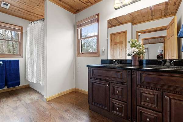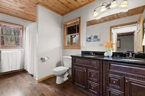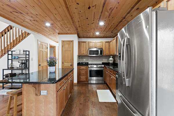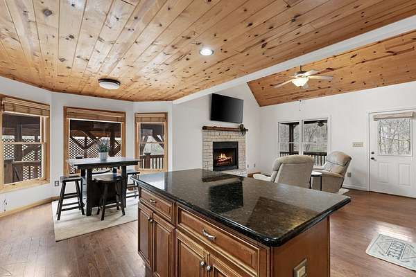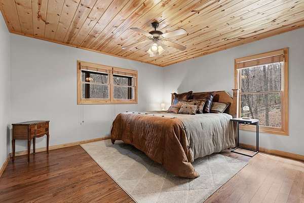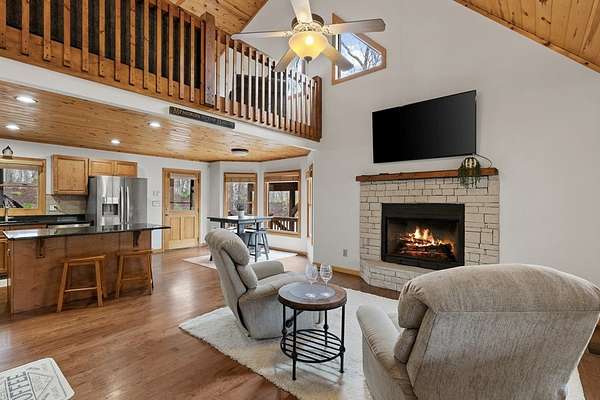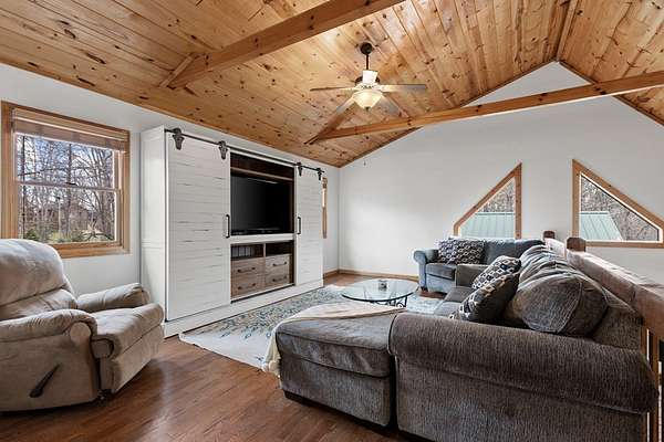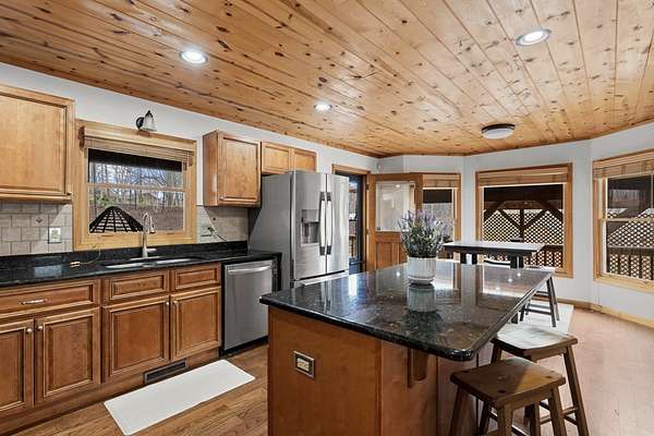 This mountain sanctuary in Blue Ridge, Georgia, combines modern luxury with the secluded peace of a triple-lot estate. Recently updated in 2026, this home is move-in ready for those seeking a primary residence or a high-end vacation retreat. The Space: Step inside to a soaring interior featuring hardwood floors and matching wood ceilings that radiate rustic warmth. The heart of the home is a culinary masterpiece, featuring high-end appliances, fresh neutral paint, and plush new carpeting throughout. The gigantic loft offers a versatile footprint—perfect for a bright home office or an expansive playroom. Flexible Living The layout is designed for multi-generational living or grand-scale entertaining. The lower level boasts a complete second kitchen, making it the ultimate in-law suite. Alternatively, transform this level into a premier recreation room and home theater. Outdoor & Peace of Mind: * Massive Wrap-Around Porch: Experience "cool breeze afternoons" and panoramic forested views. * Privacy: Three combined lots ensure your own private woodland buffer in a quiet, safe neighborhood. * Convenience: Enjoy a secluded feel while remaining minutes from downtown Blue Ridge or Downtown McCaysville for shopping and dining. Whether you are looking for a quiet mountain escape or a spacious family hub, this property offers the "next level" of Georgia mountain living.