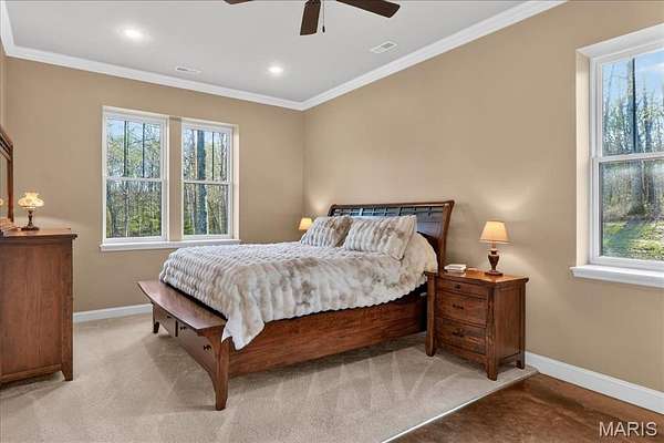 At corner of Hwy 47 & Hwy A in Hawk Point, go west on Hwy A for about 3 miles to left on Bethel Rd for about 3/4ths of a mile to property on right. (driveway is prior to low water bridge)