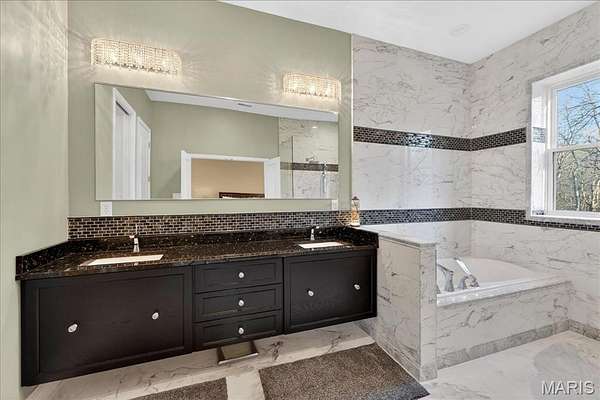 The main-level primary suite is a true retreat, featuring French doors leading to a spa-inspired bathroom with gorgeous epoxy floors, floor-to-ceiling tile, a curbless walk-in shower with dual shower heads, air-jetted tub, floating double vanity, and even a bidet. An additional bedroom on the main level provides flexibility for guests or family.