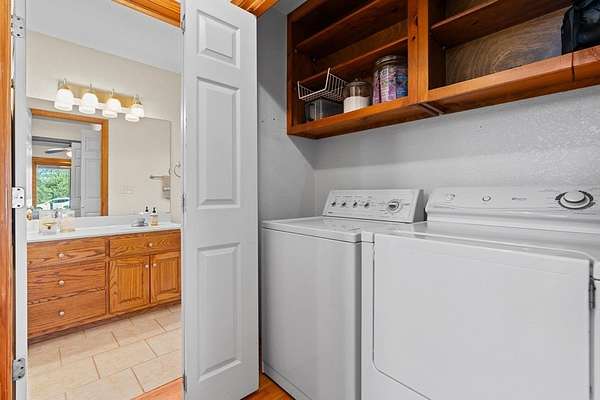 - Ceiling Fan(s), Kitchen Island, Laundry On Main, Pantry, Smoke Detector, Vaulted Ceiling(s), Walk-In Closet(s), Washer/Dryer Connection, Window Treatments, Wood Ceiling(s)