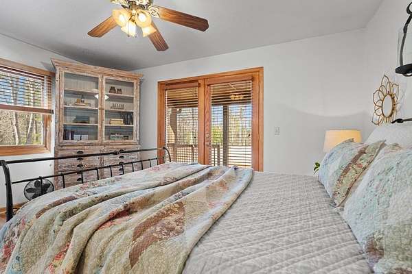 Nestled in Boulder Creek Estates, this enchanting chalet sits on over 3 acres at the summit of the hill, offering a private retreat surrounded by lush woods. The circular driveway provides ample parking and easy access for both residents and guests. Inside, the open-concept living, dining, and kitchen areas are flooded with natural light from expansive chalet windows, while the living room features a stacked stone gas fireplace. The kitchen is equipped with stainless steel appliances and a built-in pantry, ideal for culinary enthusiasts. This level also includes a full bathroom, a guest bedroom with access to the front porch, and a laundry room. Ascend to the loft to discover the primary bedroom, complete with an en-suite bath and walk-in closet. The lower level offers a tranquil space for relaxation, highlighted by a spacious recreation area perfect for entertaining. Gardening enthusiasts will love the fenced-in garden area behind the house. Recent upgrades include a new roof, HVAC system installed in 2024, along with a storage shed, fire pit, and generator for added convenience. Propane tank was recently filled with approx. 800 gallons of fuel. Schedule a viewing today to explore this remarkable property.