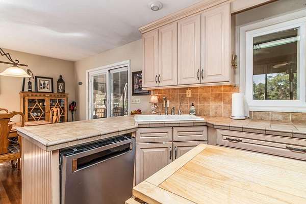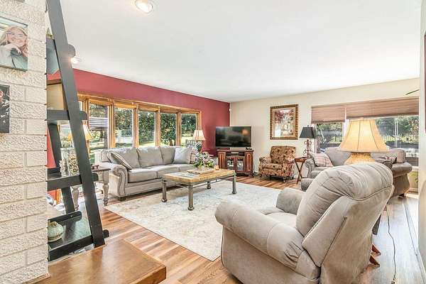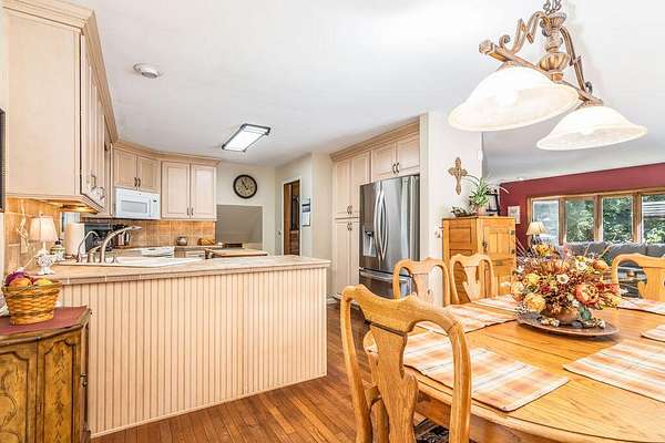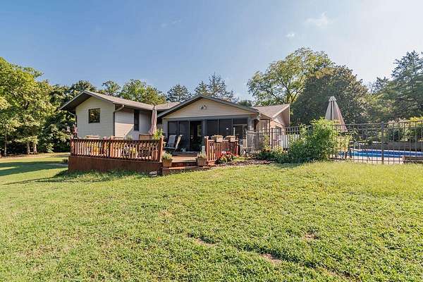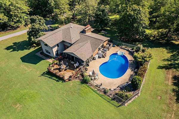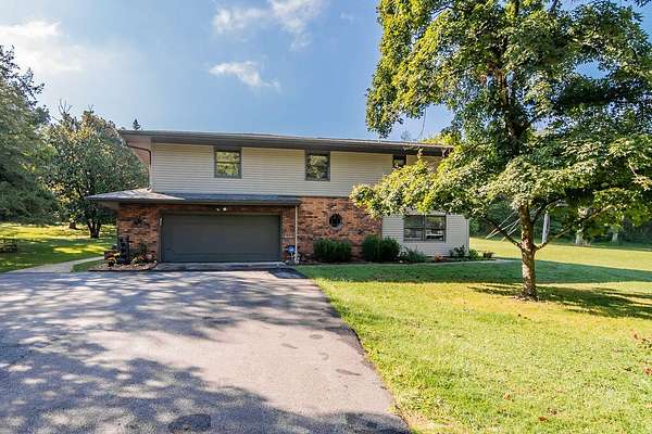 A portal into your own personal oasis-- the best of both worlds with 3.77 acres of open land and shaded woods. Cross into the property over a mostly dry creek to what opens up to a multi level home, newly renovated inground pool and large patio, detached garage/workshop complete with electric. Step indoors through the foyer into a bright living space with beautiful floors, oversized windows, and a brick fireplace that reaches all the way to the ceiling.The cozy country kitchen has a folding butcher block island, a corner sink, and a window that lets you daydream while the coffee brews. Off the kitchen, you'll find an all-season porch that's perfect for football Sundays, family hangouts, or just kicking back with a cup of coffee.Out back, a big deck leads down to the in-ground pool, all fenced in and ready for long summer days. This really is the kind of property you'll never want to leave. Come take a look--it might just be the retreat you've been waiting for. There is a lot of flexibility with the floorplan that has 3 bedrooms/2.5 bathrooms, a den/extra dining or family room, home office with separate exterior entrance, bonus family/living area in the lower level with another fireplace and currently used as a separate sleeping area. Lots of character and charm and well maintained grounds and landscaping.