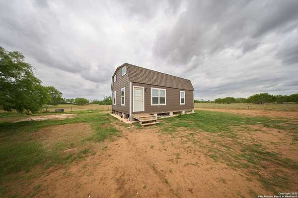 Diamond in the rough !!! 45 mins South of San Antonio Cozy Home on 10+ Acres awaiting the Magic Touch. Whether this is your prefect home or just a Get-away Experience the amazing Texas Sunrises and Sunsets with total tranquility. This home has unlimited potential to grow with room to build on your perfect Sunroom or add a bedroom and bath. This 10+ acre property is completed with a section in the front including electric and water supply to build your Dream Garage or a larger home suitable to your needs. Do you have Guests Visiting? The property is ready for you to set up an RV on a private spot with water, electric and septic hookups. This 3 pasture fenced property is perfect for a Mini Farm with cattle pens and cattle shoot on the backside. also included is a small hay shed to store. Set up your showing today and let's make this your New Home!!
