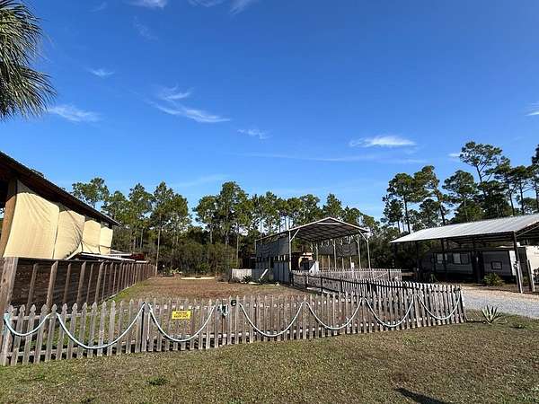 Nestled in a serene setting on a quiet dead-end street, this exceptional parcel offers a unique blend of tranquility and convenience. Located in an X flood zone, this property promises peace of mind and endless possibilities. The fenced-in grounds provide privacy and security, while a spacious pole barn offers ample storage or workshop space for your hobbies and projects. Enjoy the outdoors year-round in the screened-in living area or in the hot tub, perfect for entertaining or relaxing. The separate outdoor facilities add an extra layer of convenience with a portable washer and small dryer that will convey. You may want to add a small home from www.affordablehomescrestview.com or have a home built that works best for you. Just a short golf cart ride away, the sparkling Gulf of Mexico awaits, offering endless opportunities for beachside fun and relaxation. Embrace the best of both worlds with this idyllic property--your private oasis near the coast! https://sites.awp.media/order/69b0664d-1fc2-43f5-38bc-08dd3195081a?branding=false