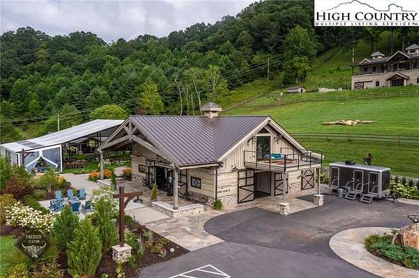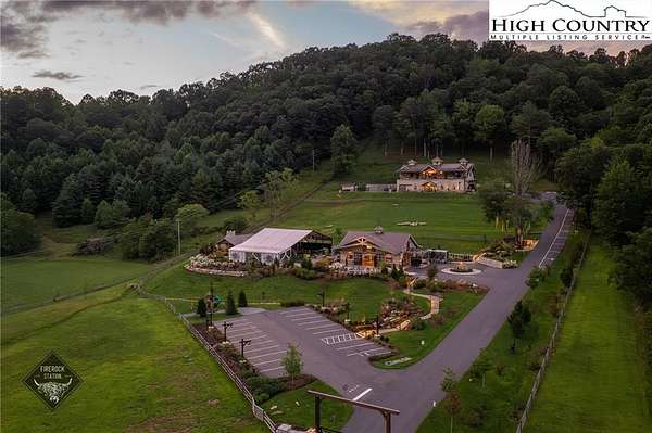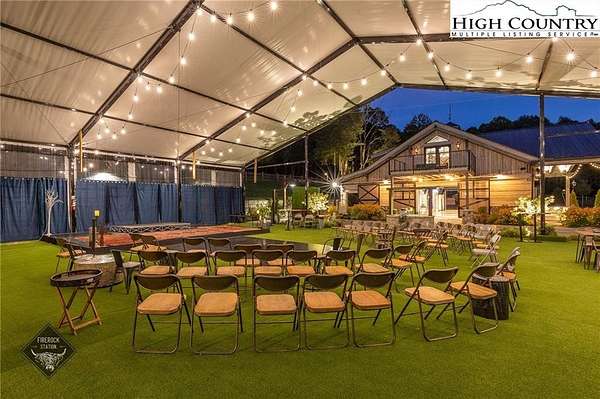 Firerock Station, the High Country's award winning wedding venue & event destination! The custom home behind is also available for purchase ($2.75M) & can be sold together for $6,250,000. Venue would come with 29.5 acres, spanning across Hwy 321. Event barn with custom lighting & full kitchen, surround sound, multiple TVs, LED light up bar, two garage doors creating an indoor/outdoor space, public restrooms, storage for retail goods or event decor & mechanicals.. There are "bride & groom" suites above w/bunk beds, private sleeping rooms (currently set up to sleep 12 guests), full baths & private balconies overlooking the grounds. Current occupancy for barn alone is 100. Restroom trailer included allows for another 300 guests. The covered tent is used for large events & provides protection from the elements. Outdoor pavilion with grill & kegerator great for catering setup. Grounds: Property spans both sides of Hwy 321 and is a mix of pasture, woods & intricate landscaping as well as incredible creek frontage. Parking suitable for 60-70 vehicles. Venue will include all furniture, equipment & decor. Sellers are willing to stay on board to help transition the future events on the books. Financials can be made available for serious inquiries along with an NDA. Property is zoned mixed RES/COMM. Boundary survey has been completed in order to subdivide the venue & the house, acreage advertised is based on that survey plus additional parcel that would convey with the venue. Lead listing agent is related to seller & seller is also a licensed NC broker.