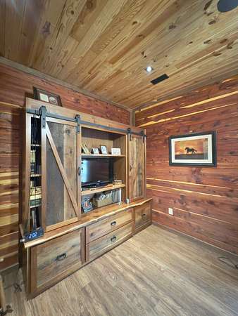 Stunning Western Cypress Home with Horse Barn, Pond, and 33.06 Acres. Escape to your own private equestrian retreat! Nestled on 33.06 acres, this property offers the perfect blend of rustic charm and modern convenience for horse enthusiasts and nature lovers alike. Key Features include Western style home beautifully crafted with durable Western Cypress, the home exudes warmth and character with cedar interior and open concept floor plan with plenty of natural light. Modern Amenities include a fully equipped kitchen, 2 car garage, cozy living area with stone fireplace, safe room and updated utilities with fiber internet. Equestrian Facilities include horse barn thoughtfully designed with four stalls, a convenient hay loft, concrete wash bay with drain and plenty of storage for tack and feed. Equipment shed perfect for storing tractors, trailers, and other equipment. Outdoor Features - Pond & Spring: A serene pond and a natural spring add to the property's charm and offer a reliable water source. Riding Trails: Enjoy riding trails winding through picturesque woodlands and open pastures, perfect for horseback riding. The Land - 33.06 Surveyed Acres: Fully fenced and cross-fenced, ideal for horses or other livestock. Scenic Views: Rolling hills and lush greenery make this property a true sanctuary. This property is ready for you to start living your dream lifestyle. Whether you're an equestrian enthusiast or simply looking for a peaceful country escape, this one-of-a-kind property has it all. NO TRESPASSING WITHOUT AN APPOINTMENT. HOME IS OCCUPIED.