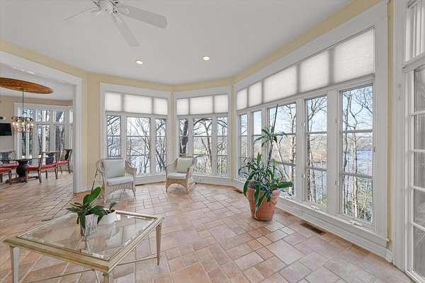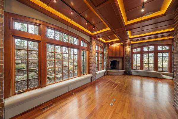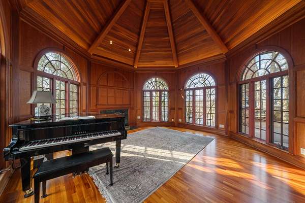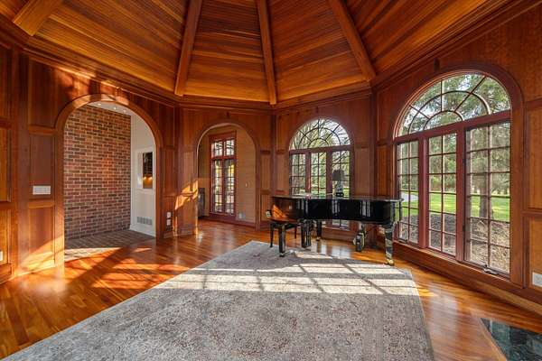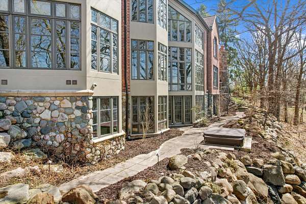 The view of the Huron River is unsurpassed from this hillside perch nestled in trees, from which you can watch swans glide past Gallup Park from every level of this architectural masterpiece that has never been on the market. Traditional spaces like a formal dining and living room flow easily from one to the next, but with unique and delightful elements tied in, such as an indoor garden with a full-grown tree, spiral staircase, and incredible paneled conservatory with wet bar tucked discreetly in. Built for entertaining with connectivity to outdoor spaces like the dining patio, terrace with outdoor wood fireplace, and patio off the sunroom. An elevator provides accessibility to all floors, including to the massive primary suite with sitting room and 180* river view; sip morning coffee with the sun sparkling on the water below. Lower level suite and kitchenette; library, den, theater and 2 of 5 indoor fireplaces. 1.86 acre in Ann Arbor Township less than 3mi from either hospital.