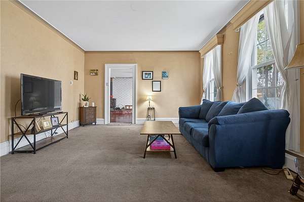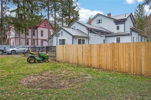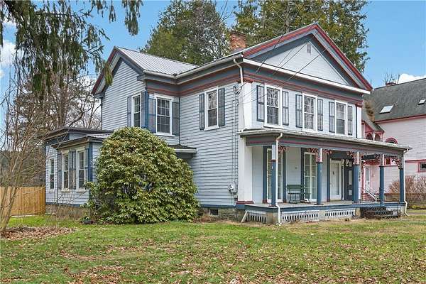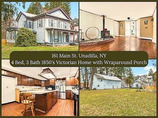 Located on historic Main Street in Unadilla, this beautiful 1850's Victorian offers architectural detail paired with meaningful updates. Inside, a glorious 3300+ square feet gives you soaring 10 foot coved ceilings, floor-to-ceiling windows and original craftsmanship that simply can't be replicated. Natural light fills every room, original hardwood floors and many period details. The signature wraparound porch, now topped with a new shingle roof, welcomes you! Inside, a foyer opens to a stately living room, followed by a sitting room and anchored by the 'wood-burning stove' room at the center of the home. A large kitchen with center island offers home cooked meals and gatherings with new appliances and ample storage. The dining room overlooks the backyard and flows seamlessly to the rear deck, making entertaining feel effortless. Downstairs may function as it's own apartment with a large room off the living area that is used as a bedroom. There's a full bathroom and plenty of closets for storage! Upstairs, a separate in-law apartment with private entrance provides a main bedroom with a full bath and walk-in closet. There are two additional bedrooms, and two very large bonus rooms that offer all kinds of versatility for home office, play areas, hobby space or more bedrooms. Another updated full bathroom gives some flexibility, with its own sunny eat-in kitchen that creates an ideal setup for extended family, guests, or potential income. Major improvements have already been handled, including a new metal roof on the house, new porch roof, a new gravel driveway, and a 6-foot privacy fence. The septic system was recently serviced and is in good condition, adding further peace of mind. Outside, the property expands your lifestyle options with a large open yard, an above-ground pool, a detached carriage house/garage and a storage shed. All that's left is your cosmetic touches and some minor work; then you have an opportunity to own a historic home with key updates already in place. Choose to live, live and rent or realize the potential income through short term rentals or a bed and breakfast! 19 minutes from All Star Village and Oneonta.