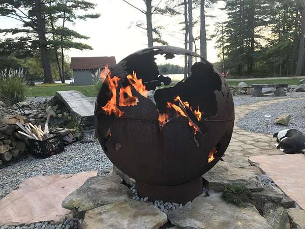 Welcome to Cathedral Rock, a one-of-a-kind lakefront retreat set on 8.2 private acres with 3,892 sq ft of living space and 330 feet of frontage on Portaferry Lake. Formerly a Boy Scout camp (1947-2006), this extraordinary property blends rich history with refined modern luxury. Its namesake, Cathedral Rock, is a towering natural boulder beside the home-once a gathering place for services and climbing. Built in 2015, the custom contemporary residence offers two bedrooms, three full baths, and one half bath. Distinctive details include granite countertops, a stainless-steel kitchen sink, two antique stained-glass windows, an antique transom window from Argentina, a vaulted living room ceiling, and a historic fireplace mantel from the Waldorf Astoria. Expansive windows capture peaceful lake views and abundant natural light. The primary suite features an en-suite bath, sitting area, and large picture windows overlooking the water. An exterior bridge upstairs provides elevated access to Cathedral Rock, adding architectural interest and a unique connection to the landscape. The finished walkout lower level is designed for relaxation and entertaining, complete with a professionally outfitted home gym, full bath with built-in sauna and steam room, media room, and access to an outdoor patio. An attached garage offers year-round convenience. A renovated 697 sq ft guest house-formerly the camp counselor's residence--includes its own kitchen, full bath, living area, and private bedroom. Perennial gardens, large ornamental rock formations, and extensive professional landscaping incorporate a nearby stream into the design. The waterfront offers 330 feet of frontage, a permanent dock, sitting platform, electrified lean-to, private beach, and four outdoor firepits. Two storage sheds provide ample space for lake and recreational gear. Starlink high-speed internet ensures reliable connectivity. Offered fully furnished, this is a rare opportunity to own a legacy waterfront estate.