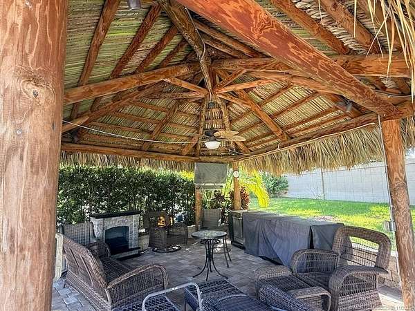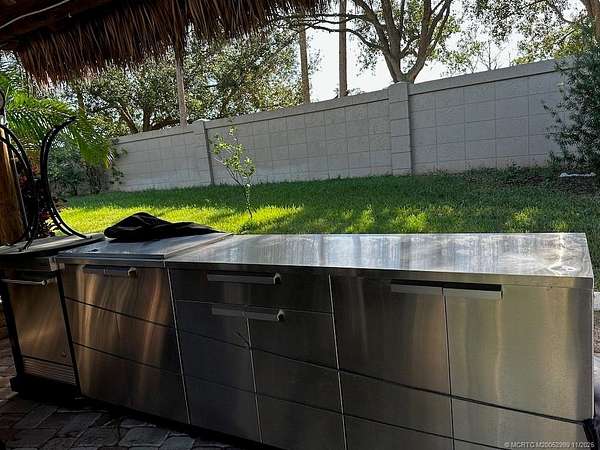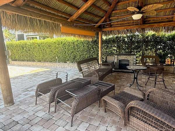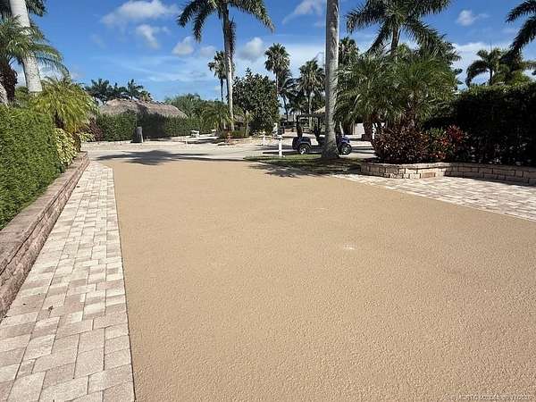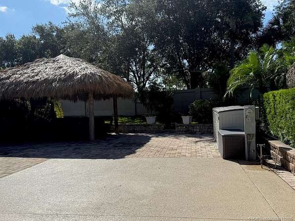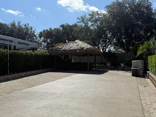 Est $1,558/moNEW TIKI RE-THATCH JULY 2025! This extra-wide lot, positioned along the wall for added privacy, offers ample space for entertaining and relaxation. The attractive tiki, built in 2018, includes a fan and plenty of room to customize with your dream kitchen or bar. A stainless steel sink and counter are already in place, providing a great starting point for any outdoor chef. The lot comes fully furnished, and is thoughtfully landscaped along the sides and rear for both privacy and beauty. There's abundant room for lounging and enjoying the lush surroundings