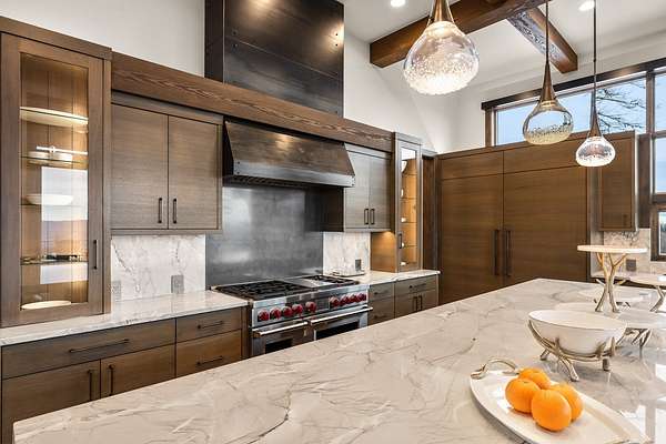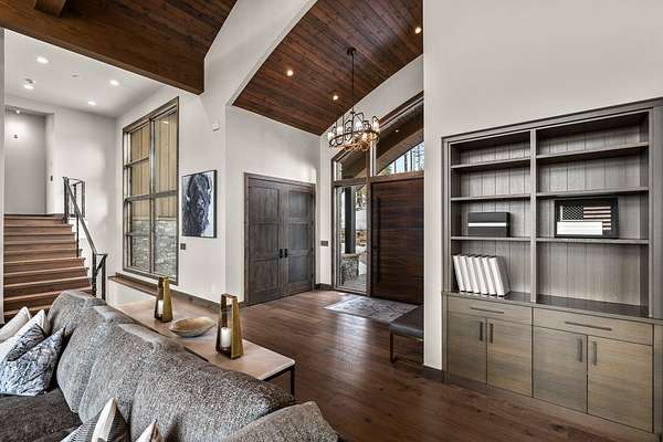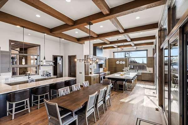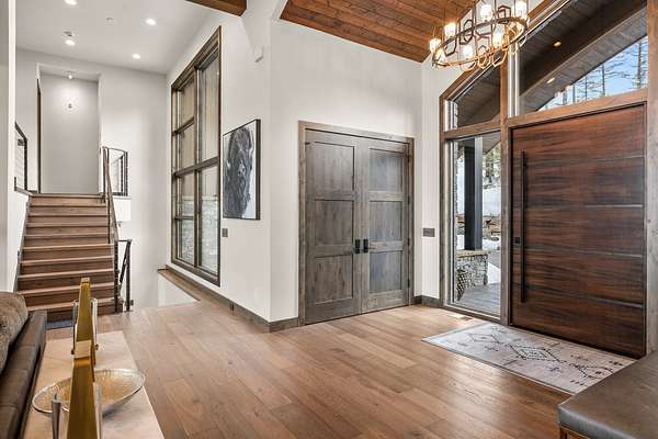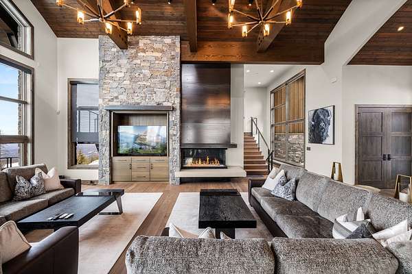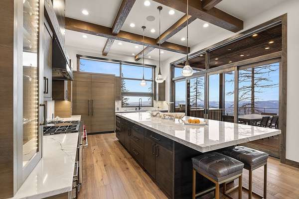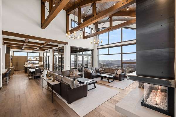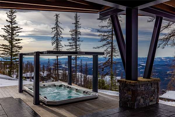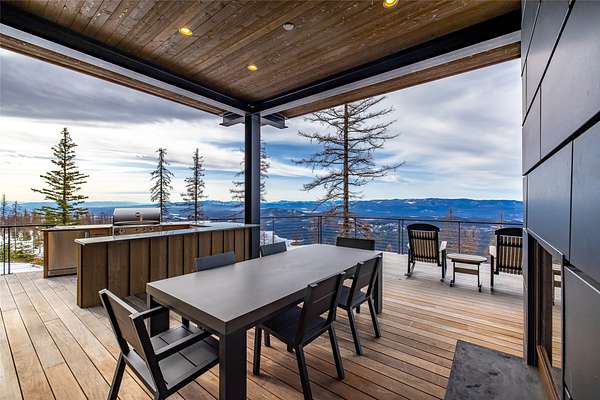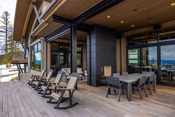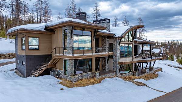 This Eagle's view is a 6200 sq ft masterpiece of luxury mountain living. Situated on 1.6 acres in Northern Lights, the home offers one-of-a-kind 270 degrees views, ultimate privacy & extraordinary finishes. Six bedrooms/6 baths can accommodate up to 14 guests. Expansive living spaces feature a Family room perfect for gathering, 5 fireplaces, gourmet kitchen w Sub-Zero/Wolf appliances and game room-complete with shuffleboard, poker table, bar & darts. A dedicated ski room w lockers ensures seamless slope access. A mudroom, gym, infrared sauna, and private office provide practical luxury. Designed for convenience, the home includes 4 washer/dryer sets, making daily living effortless. Outdoors, multiple living areas with expansive decks invite relaxation from a screened-in outdoor family room, to the swim spa, outdoor grill, fire pit and b-ball/pickleball court, all surrounded by breathtaking mountain scenery & views galore. Perched on a cliff in the Elk Highlands/Northern Lights neighborhood, this one-of-a-kind Mountain Modern home offers unmatched 270-degree views. Thoughtfully designed with extraordinary finishes, breathtaking views from nearly every room, ski access, and ultimate privacy, no other home on Big Mountain compares.