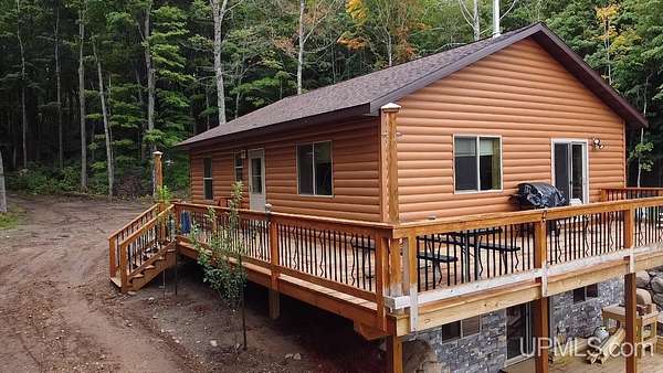 Off-Grid Lakefront Cabin on Porter Lake Discover a one-of-a-kind opportunity to own a cabin on the tranquil shores of Porter Lake, with 2.34 acres and offering 220 feet of private lake frontage with no public access. Built primarily in 2023, this off-grid retreat has modern conveniences like a push-button generator (connected to the primary propane tank) and an in-home Jackery power station for electricity when needed. The Jackery is a Jackery Explorer 2000 DOUBLE kit set up for 4kw-600 watts of power, which can be added onto as well. Enjoy the simplicity of all-propane appliances, including lights, making the cabin completely independent of the electric grid--no utility bills! Located just 10 miles off Highway 141 near Amasa, the journey to this remote oasis is as exciting as the destination, with opportunities to spot moose in their natural habitat. Once here, it's hard to leave, thanks to breathtaking sunsets and excellent fishing for walleye, northern pike, perch, smallmouth bass, and panfish. The cabin's low-maintenance vinyl log siding means no need for staining or painting, allowing you more time to relax and enjoy the wilderness. Whether you're looking for a family getaway or a secluded fishing spot where you may be the only boat on the lake, this property offers unmatched peace and privacy. This past summer season, the seller has added gutters, a rock/stone walkway, and a 6x6 timber walkway, as well as a boat landing with gravel stone. Come explore this rare opportunity on Porter Lake--your perfect off-grid escape awaits!