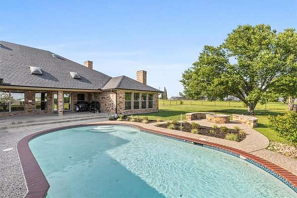 Priced below tax assessed value. Exquisite Luxury Ranch in MCLENDON CHISHOLM! Discover the epitome of luxurious living in this stunning estate, poised on 5.5 pristine acres in highly sought-after Rockwall Heath high school. Elegantly updated throughout, this 4-bedroom, 3 full bath, 2 half bath home perfectly blends rustic charm with modern sophistication. Step inside to be greeted by an expansive open floor plan adorned with hand-scraped hardwood flooring ii living area. 2nd living area is spacious with its own fireplace and half bath. The home boasts two fireplaces, offering warmth and ambiance for intimate gatherings or quiet evenings. The heart of the home is its gourmet kitchen, a chef's delight featuring lustrous granite countertops, double ovens, and an abundance of cabinets and counter space. Light and bright, this kitchen invites culinary creativity and is perfectly suited for entertaining. The luxurious primary suite is a serene retreat, complete with a beautifully appointed ensuite bath that promises relaxation and comfort. Each of the additional three bedrooms is thoughtfully designed to provide privacy and tranquility. Beyond the interiors, this exceptional property extends its charm outdoors. The expansive grounds feature a 60x54 with concrete aisle, 2 rollup doors barn equipped with water, electricity, three 22x12 stalls (great for mares and foals), wash rack ,hay storage , and RV parking. Driveway all the way to the barn. Designed with equine enthusiasts in mind, lighted riding arena area for late riding, the property is fenced and cross-fenced, offering ample space for horses and outdoor recreation, plus a pond. Additional outdoor amenities include a shimmering pool and a cozy firepit, ideal for enjoying Texas evenings under the stars. This estate combines seclusion with convenience. This property offers an unparalleled lifestyle of luxury, space, and privacy. NO HOA. Horse ready. Experience it yourself.
