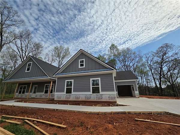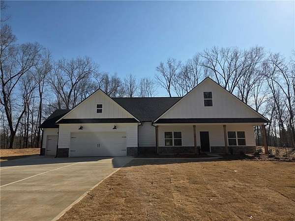 Brand new construction! Three bedroom two and a half bath ranch home on a 2.01 +/- acre lot with an attached third car garage! Our popular Birch plan is under construction and there is still time to make decorator selections. Home with cement siding, metal roof accents, covered back patio and front porch. The inside of the home features two nicely sized secondary bedrooms and a full bath on one side and the owner's suite on the other. There is a separate dining room, large laundry room, and a good sized pantry for storage. Laundry room conveniently located off the master bedroom. Open concept family room/kitchen with LVP flooring throughout living areas, bathrooms, and laundry and plush carpet in the bedrooms. The family room has a real wood burning fireplace. Kitchen has white cabinets with a large island, granite counters in kitchen and baths, tile backsplash in kitchen. The owner's suite has tray ceilings in the bedroom with a huge walk-in closet. The owner's bath has separate vanities and a large tile shower with glass door. Expected completion for this home is mid-May 2026. Builder contributes to buyer's closing costs with preferred lender. Some photos are from previously completed Birch plan.