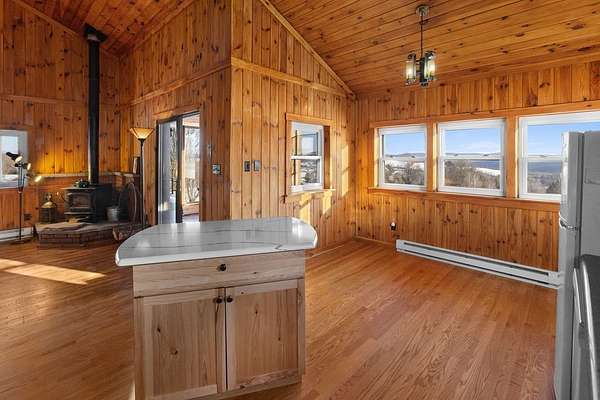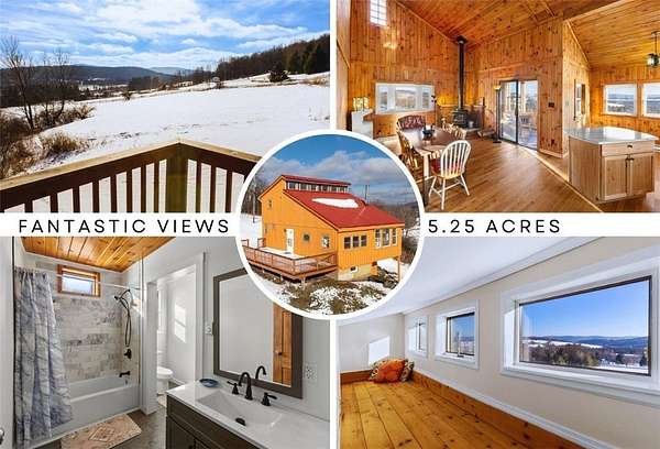 Perched above a sweeping Catskills meadow, this beautifully renovated contemporary home is the kind of place that stops you in your tracks-and then convinces you to stay awhile. Built circa 1990 and set on 5.25 acres along a quiet, town-maintained road in Hamden, the home is wrapped in breathtaking mountain views that stretch endlessly across open fields and rolling hills. (And for those dreaming even bigger, additional land is available.) Whether you're hosting friends or savoring a quiet morning coffee, the expansive deck is the front-row seat to it all-sunrises, sunsets, and everything in between. Inside, the home feels both warm and airy. A practical mudroom entry welcomes you in before the space opens into a stunning great room with soaring ceilings and wood floors, designed for connection and comfort. The open floor plan seamlessly blends the kitchen, dining area, and living room, anchored by a cozy woodstove for Catskills winters, along with electric heat zones for flexible, efficient comfort year-round. Just off the great room, a three-season room invites you to linger with the views, protected from the elements yet fully immersed in the landscape. The main level offers a peaceful bedroom retreat and a beautifully updated full bath with a tiled tub/shower-perfect for easy single-level living. Upstairs, two additional bedrooms and a half bath provide space for guests, family, or creative pursuits. One bedroom features a charming "crow's nest" hideaway-a magical nook for reading, daydreaming, or quietly admiring the mountains from above. Downstairs, a full basement offers excellent ceiling height and endless potential-studio, rec room, additional living space, or workshop-ready to be finished if desired. Beyond the property, Hamden delivers classic small-town Catskills charm: scenic hiking trails, the Delaware River, a historic covered bridge, a beloved vintage baseball team, and the Hamden Inn, a local gathering spot for great food and conversation. This is more than a house-it's a Catskills lifestyle defined by views, light, and open space. A place to exhale, to gather, and to fall in love with the mountains all over again.