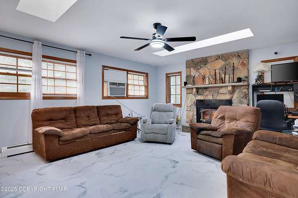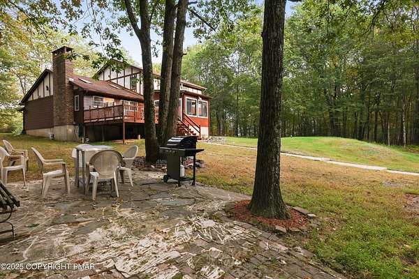 Welcome to this beautiful Tudor-style 4-bedroom, 3-bath home offering comfort and timeless character in a prime location. The gourmet chef's kitchen, featuring granite countertops, stainless steel appliances, and custom cabinetry, is perfect for family meals or entertaining. The Sunroom provides a bright retreat overlooking a private deck and Sparkling In-ground Pool. Enjoy gatherings in the elegant formal dining room and the convenience of a two-car garage. The unfinished basement gives you the opportunity to make it your own, whether for storage or future living space. Set on 1.4 acres of tranquility, this home blends practicality with charm. Located just minutes from Mount Airy Lodge, Camelback Ski Resort, Wineries, The Crossings, and Kalahari, and with easy access to I-80-your ideal Pocono retreat awaits! STR allowed in HOA.