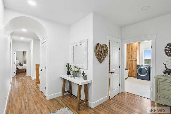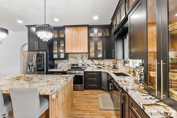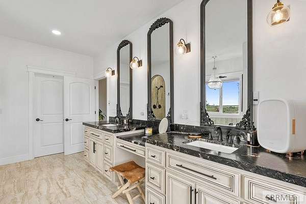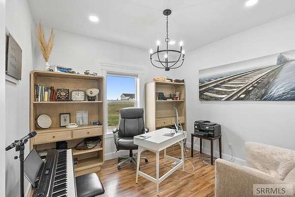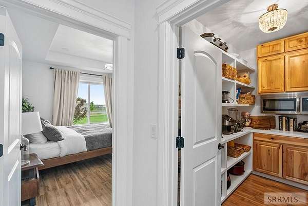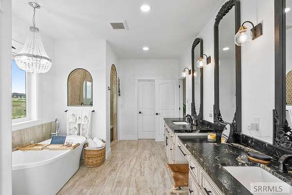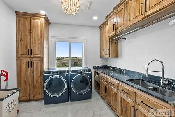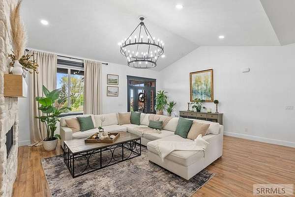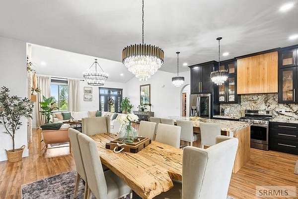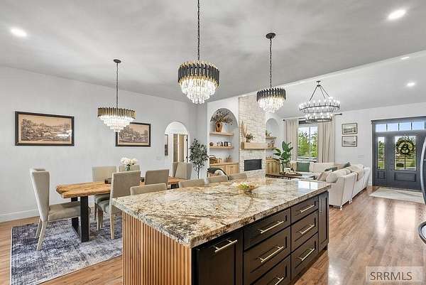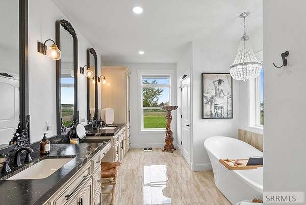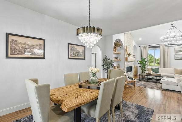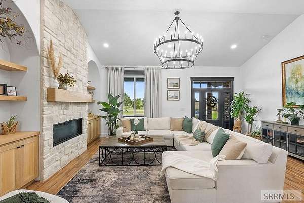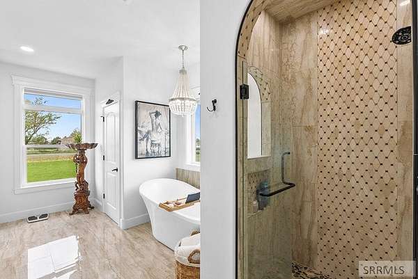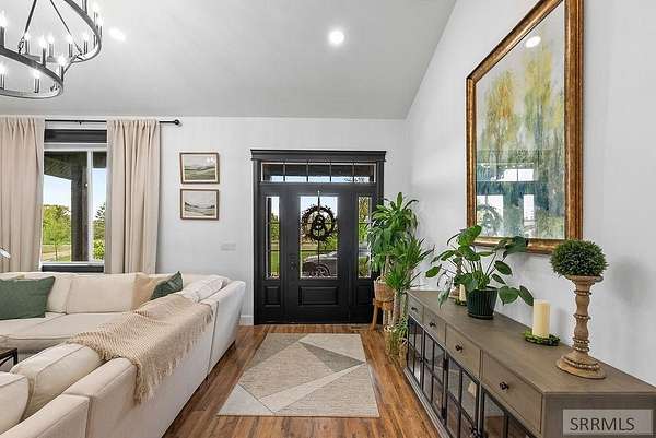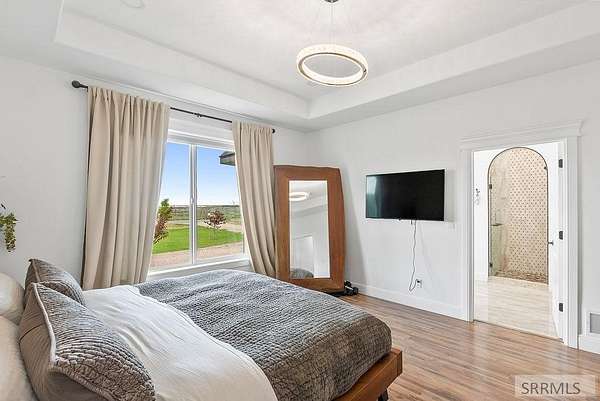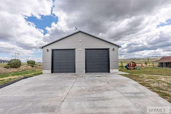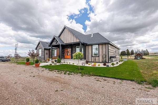 A rare chance to own a luxurious, custom-designed estate on 5 pristine acres in American Falls. This 5,126 sq ft masterpiece blends modern elegance with timeless sophistication and upscale finishes throughout. Inside, enjoy 10-ft and vaulted ceilings, arched doorways, white oak built-ins, LVP flooring, and designer tilework. The chef's kitchen stuns with black alder cabinetry, brushed gold hardware, double granite counters, gas stove with custom hood, pot filler, and walk-in pantry. The primary suite is a retreat with coffered ceilings, a spa bath, leathered granite, soaking tub, tiled shower, and chandelier-lit closet. Remote blinds, custom lighting, a bold powder room, and a laundry room with sink and folding station enhance the interior. The basement is framed for 3 beds, a bath, rec space, wet bar, and fireplace. Outside, find stained oak siding, covered deck, heated chicken coop, 50x40 finished shop with 14-ft doors and 220V, and a charming tiny house/she shed. Top-tier systems include on-demand hot water, triple filtration, A/C, gas furnace, sump pump, and hookups for BBQ/shop heat. The heated 3-car garage and in-progress landscaping complete this exceptional property. Schedule your private tour today.
