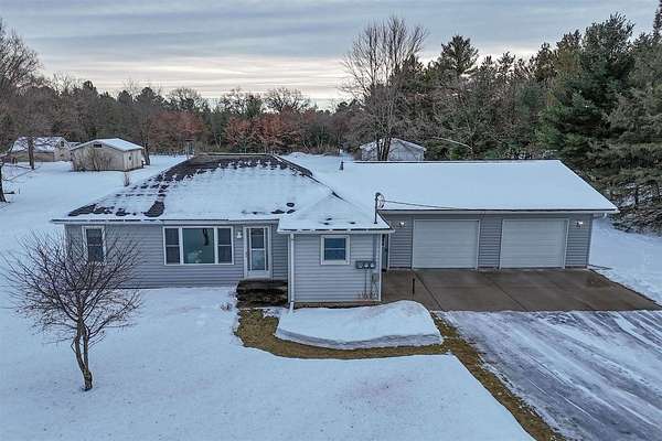 Discover the perfect blend of charm, comfort, and space in this inviting 3-bedroom, 1-bath bungalow, nestled on 3.9 partially wooded acres. Step inside to find a beautifully updated kitchen and bathroom, offering custom cabinetry in both. The living room features a welcoming wood stove--ideal for Wisconsin winters--and the partially finished lower level is just a ceiling away from adding even more living space. The smallest of the bedrooms offers a patio door looking out over the back yard, and with 2 access points could easily be a great office, dining room, or anything else you might need. Car enthusiasts, hobbyists, or anyone in need of storage will love the expansive garage options: a large 2-stall attached garage plus an additional 2-stall detached garage complete with a workshop. With room to roam, wooded privacy, and thoughtful updates throughout, this property is ready to welcome you home.