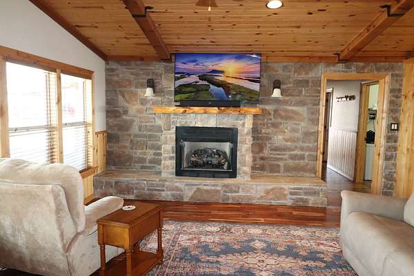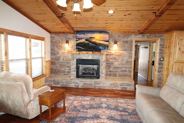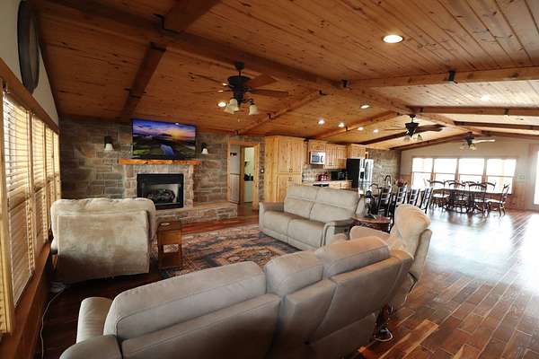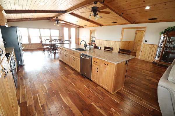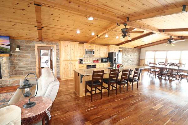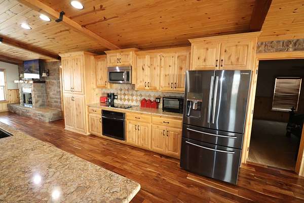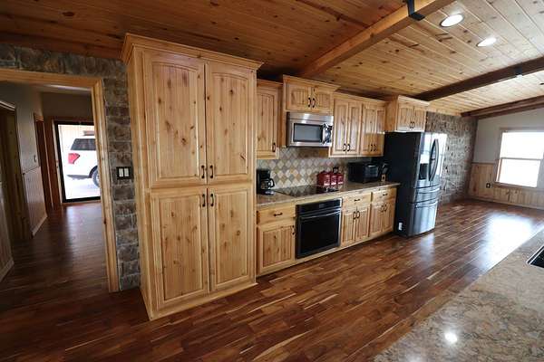 Absolutely Amazing Red River Hilltop Home! View for miles of the Red River Basin. Approximately 1 mile of live-water river frontage. Beautiful custom built 3 bedroom, 3.5 bath home with an attached breezeway 2 car garage with heat and air. Sit on the porches and watch spectacular sunrises and sunsets! Large 40x50 insulated shop with 3 covered areas. The outdoor recreation is off the charts in this place! Elevation changes from 940 feet dropping off to around 850 ft river bottom. Live water cat fishing is arguably some of the best in Oklahoma and Texas! Endless adventures on an air boat or simply float the river in a tube. Massive white tail deer traverse the corridor along with countless other game species such as Bobcats. An abundance of wild hogs to shoot at! The exterior of the home has custom stone and concrete flat work around the outside with long covered porches. The interior has a southwest feel of warmth and comfort due to the tremendous amount of natural light combined with wood and stone. Handscraped acacia hardwood flooring throughout the main living area. Knotty pine ceilings and cabinets. Beautiful stone fireplace with a gas insert. The kitchen has lots of storage space with an impressive island and quartz countertops. Custom ice maker nook and walk in the pantry. Isolated master bedroom with marble shower and tile accents. Inside safe room with steel door. Home is approximately 2500 square feet. Very energy efficient with vinyl windows, propane heat, Central Air. City water & well water. Water filtration system. 2 tankless water heaters. Generac generator back up electricity. Location: Approximately 5 miles west of Waurika. Approx 2 hours south of Oklahoma City, 2 hours Northwest of Fort Worth. Approx. 45 minutes northeast of Wichita Falls.