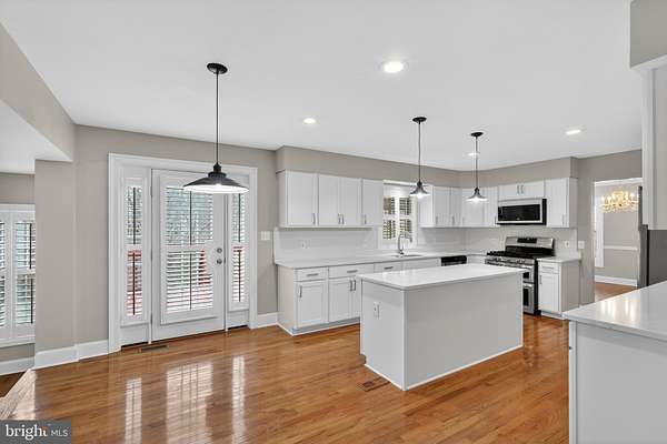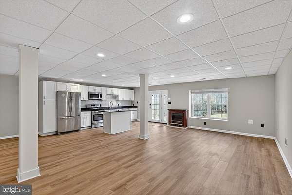 This stately brick-front home delivers space, style, and functionality across three fully finished levels. Set on a large, gently sloping lot in Huntingtown, MD, this 4-bedroom, 3-bathroom property combines classic charm with modern living. All 4 generously sized bedrooms occupy the upper level, creating a private sanctuary away from the main living areas. Bathrooms are strategically positioned across all 3 floors for everyday ease: a full bath in the finished basement, one on the main level, and one upstairs. The main level showcases an open-concept living, dining, and kitchen area flooded with natural light, polished hardwood flooring, and direct access to the expansive sunroom-a bright, airy space overlooking the backyard. The kitchen features updated white cabinetry, stainless steel appliances, and a center island that works equally well for everyday meals or entertaining guests. The finished walkout basement offers exceptional versatility with a full second kitchen, spacious living area, and full bathroom, designed for in-laws, guests, or even rental income. Double doors open to the backyard, where ample space awaits outdoor enjoyment throughout the seasons. Additional highlights include a full-length covered front porch with room for rocking chairs and seasonal decor, an oversized 2-car garage withe clean floors. There's also a bonus storage space, and a wide driveway. Fresh paint throughout and upgraded lighting fixtures add a polished touch. The expansive backyard offers privacy and serenity. Located a short drive from local shops, schools, and major commuter routes, this home balances peaceful surroundings with everyday accessibility. For multi-generational living, rental flexibility, or simply more square footage, this residence delivers on every level. Literally. "It has the detached workshop that is more than 700 square feet."