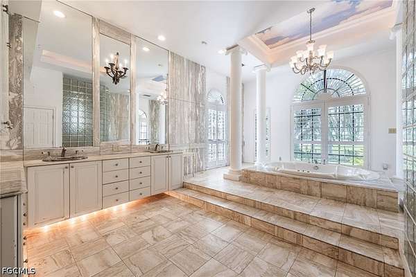 - Bathtub, Breakfast Bar, Cable TV, Dual Sinks, Fireplace, French Doors Atrium Doors, High Ceilings, Kitchen Island, Main Level Primary, Separate Formal Dining Room, Separate Shower, Tray Ceilings, Walk In Closets, Window Treatments
