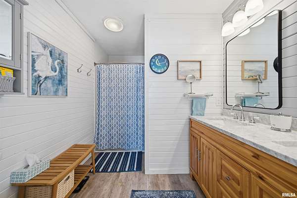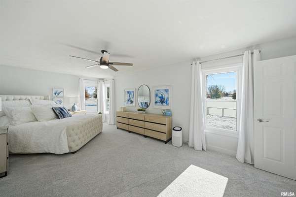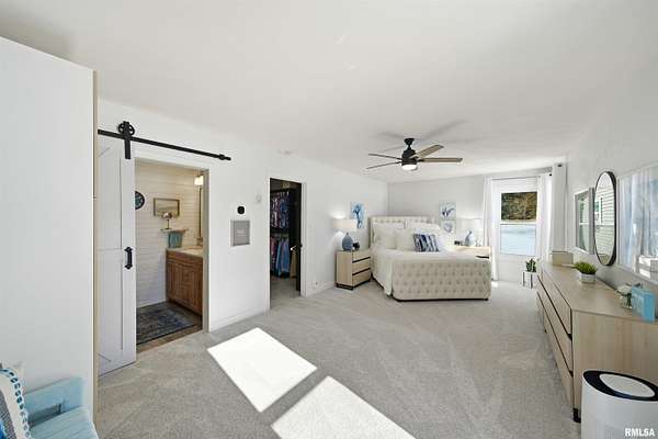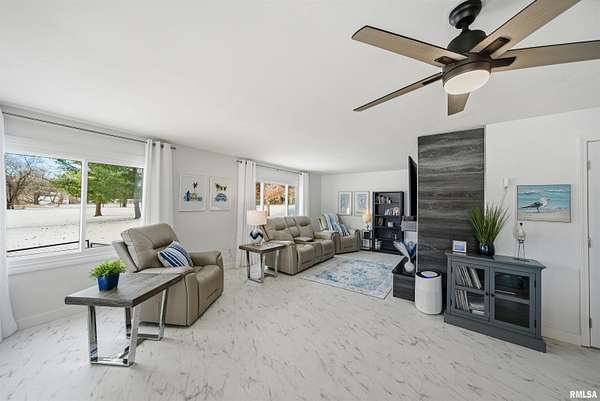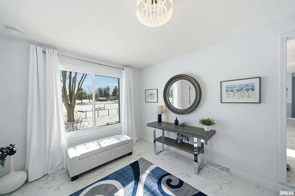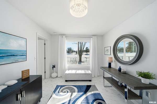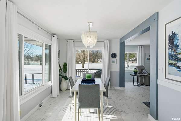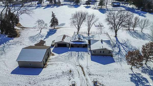 Updated 2025 light bright & airy three bedroom 2 1/2 bath ranch boasting lots of windows to view your 550 foot plus water frontage on 3.66 acres on Long Lake. This ranch home has an attached heated & cooled 24x 24 garage w/200 amp service, keypad, entry, & attic storage. Need more room? Then step over to your 30x36 detached garage w/100 amp panel, keypad entry, & built-in shelving. There is one additional storage building perfect for all your outdoor equipment. The primary suite w/private ensuite boast a huge custom designed walk-in closet. New commercial, gray vinyl tiles & upgraded pad & carpeting throughout 2025. New paint, baseboards, & registers throughtout. Air duct cleaned 2025. Large laundry room w/storage closet plus additional custom shelving, washer, dryer, & pedestals to convey. Kitchen has quartz counters, ceramic backsplash, new dishwasher, SS appliances, & new cabinet hardware. New light fixtures & fans throughout. New 220 line & hot tub on rear deck overlooks the lake for gorgeous sunset enjoyment. 16,000 kW Generac generator w/auto transfer switch -services all buildings 2021. Grand entrance to the property with stone columns w/column lighting frame the black top driveway. Ranch is built on a crawlspace. Crawl walls coated 2022, drain tile & Visqueen 2022, fresh air crawlspace, ventilation 2022, sump pump & back up sum. The list goes on! Don't forget your new floating dock w/a three boat capacity. Trolling motors only on Long Lake.