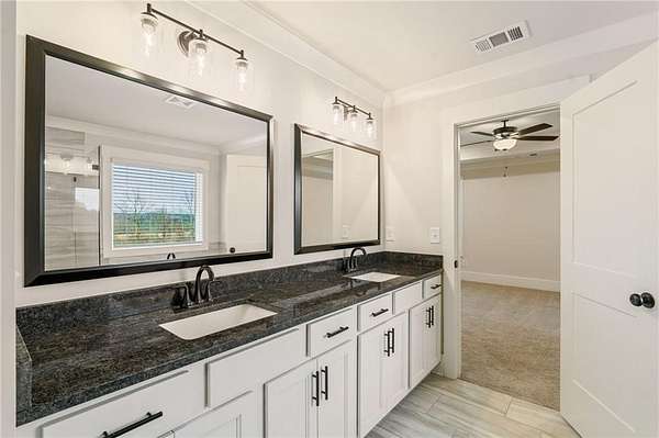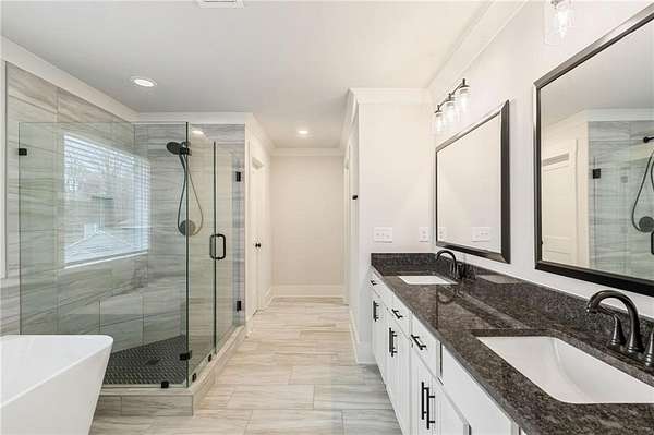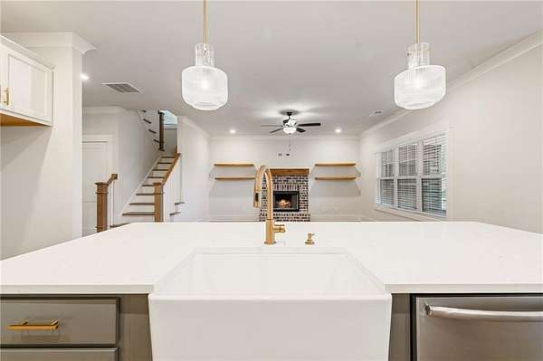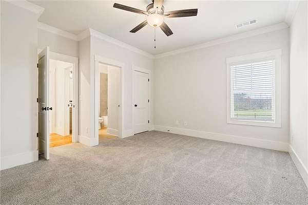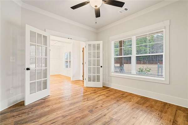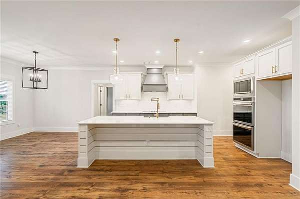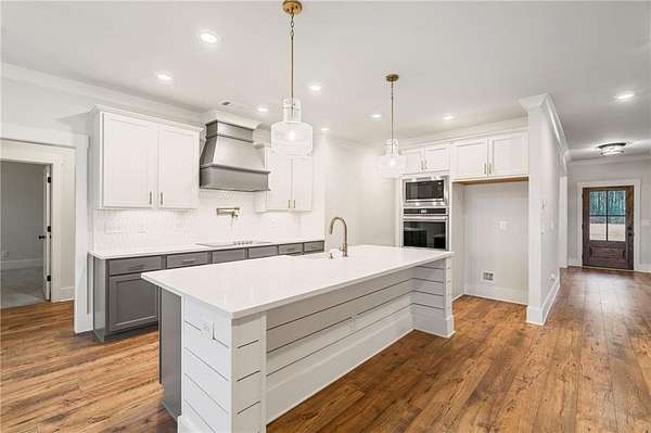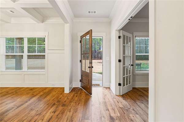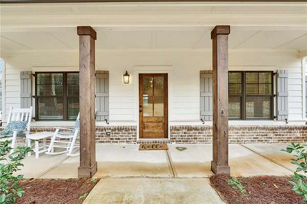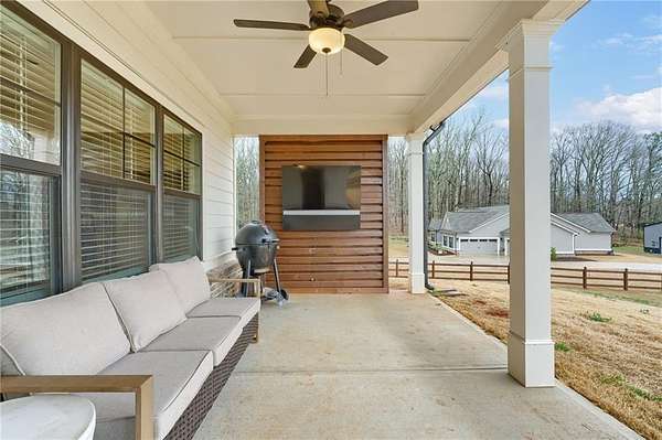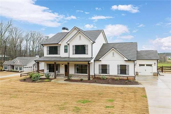 Modern farmhouse on two private acres built in August 2024 with open living spaces, a guest suite on the main level, and a large covered porch designed for outdoor living. This beautifully crafted home by Reliant Homes blends modern finishes with comfortable everyday living while offering the space and privacy many families are searching for today. A welcoming rocking chair front porch and spacious three car side entry garage create a warm first impression. Inside, the home is filled with natural light and timeless design, featuring wide plank hardwood floors, soaring ceilings, and elegant trim details throughout the main living areas. At the center of the home, the kitchen is both stylish and functional, featuring a large quartz island, white and slate cabinetry with soft gold accents, double ovens, a pot filler, and a generous walk in pantry. The open layout connects the kitchen seamlessly to the breakfast area and fireside family room, creating an inviting space for everyday living, entertaining, and gathering with family and friends. The thoughtfully designed floor plan includes four bedrooms and three full bathrooms with a flexible layout. A private office and guest suite on the main level provide the perfect space for visitors, working from home, or multigenerational living. A separate dining room offers a beautiful setting for holiday meals and special occasions. Upstairs, the spacious primary suite features a tray ceiling, large walk in closet, and a spa inspired bathroom with dual vanities, a soaking tub, and a glass enclosed shower. Two additional bedrooms provide comfortable space for family members. Outdoor living is just as inviting with a large covered back porch featuring a dedicated TV wall and grilling area overlooking the fenced backyard and open acreage. The approximately two acre homesite provides plenty of room for kids and pets to play, gardening, or simply enjoying the peaceful surroundings. Located in Covington and just a short drive to Lake Varner, this property offers the tranquility of country style living while still being convenient to shopping, dining, and everyday essentials.