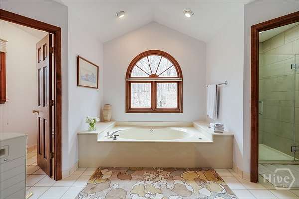 - Bathtub, Breakfast Area, Built-In Features, Double Vanity, Entrance Foyer, Fireplace, Gourmet Kitchen, Kitchen Island, Primary Suite, Pull Down Attic Stairs, Separate Shower, Upper Level Primary, Vaulted Ceiling(s), Wet Bar