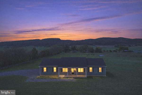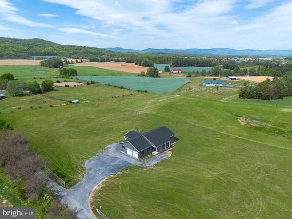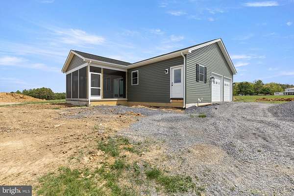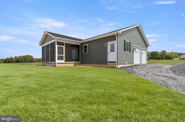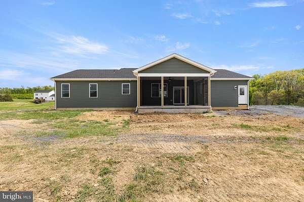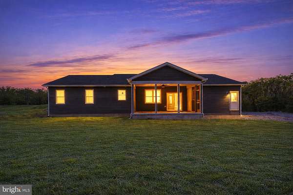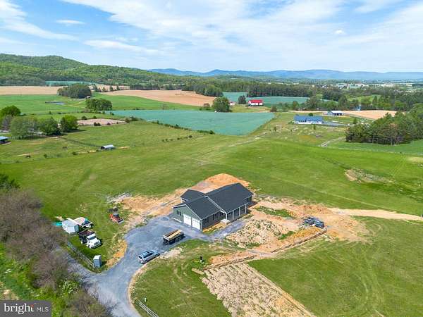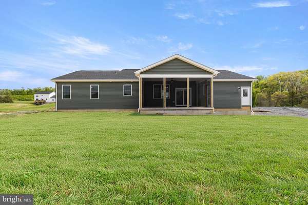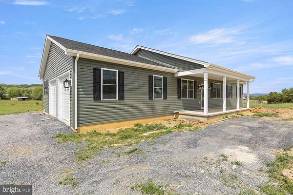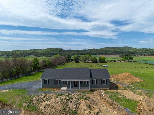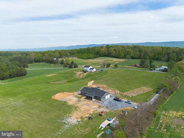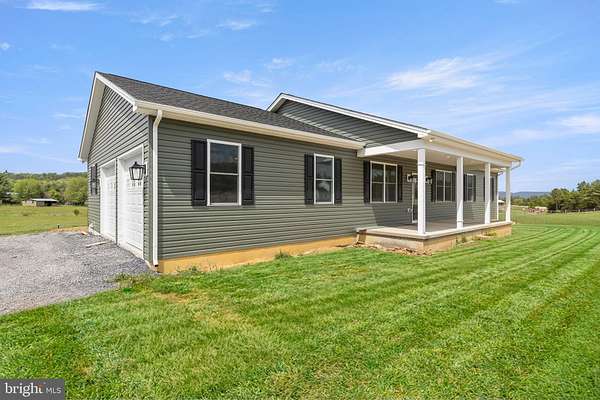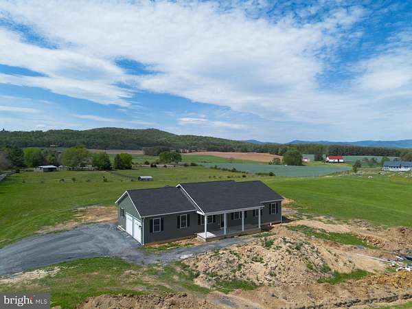 Nearly completed and absolutely stunning, this one-level home is perfectly situated on 5 acres with breathtaking pastoral and mountain views. Offering almost 2,000 sq. ft. of finished living space, this home blends comfort, style, and functionality throughout. Enjoy the scenery from the spacious 23' x 14' screened-in porch, ideal for relaxing or entertaining. Inside, you'll find a bright and open combination living and dining area, along with a beautifully appointed kitchen featuring white cabinetry, granite countertops, stainless steel appliances, and an undermount sink. The oversized garage provides ample space, while the large laundry room includes a pantry closet and convenient access to both the backyard and garage. The primary suite is truly exceptional, featuring a 22' x 16' bedroom, an expansive 8' x 15' walk-in closet with custom shelving and shoe storage, and a luxurious en-suite bath. The primary bathroom offers double vanities with quartz countertops, a center makeup vanity, a spacious 7' x 4' tiled walk-in shower with bench and glass doors, a private toilet room, and a large linen closet. The additional bathroom includes granite vanity top with undermount sink for a cohesive, upscale finish. The exterior is just as impressive, with a beautifully finished 10' x 30' covered concrete front porch-perfect for taking in the peaceful surroundings. This beautifully completed home offers the perfect blend of modern finishes, thoughtful design, and serene country living.