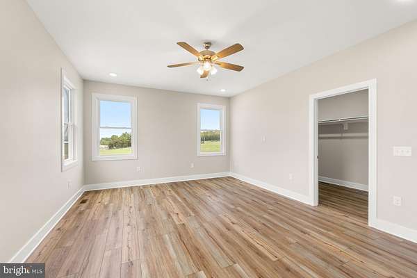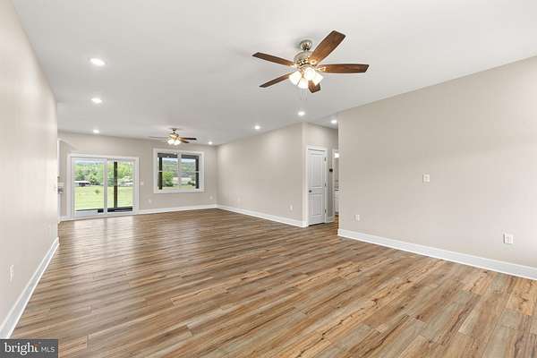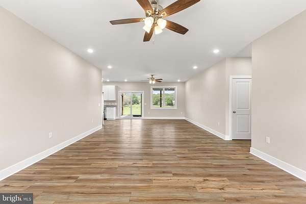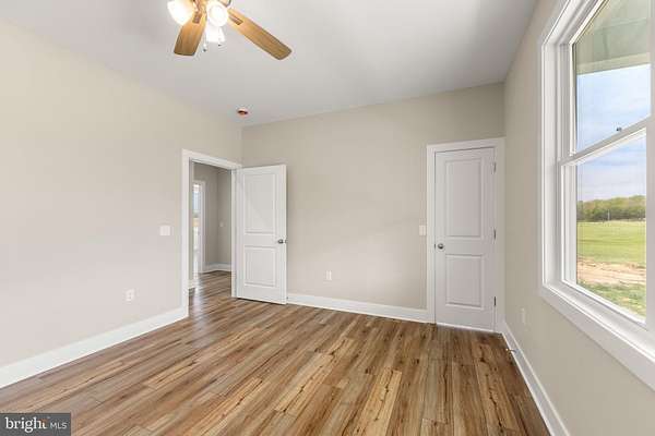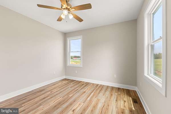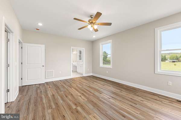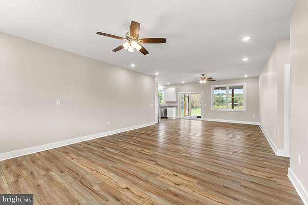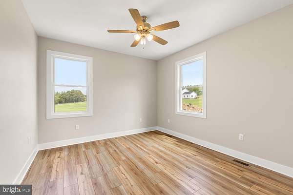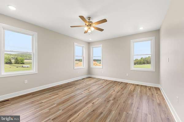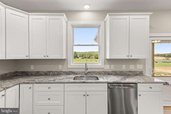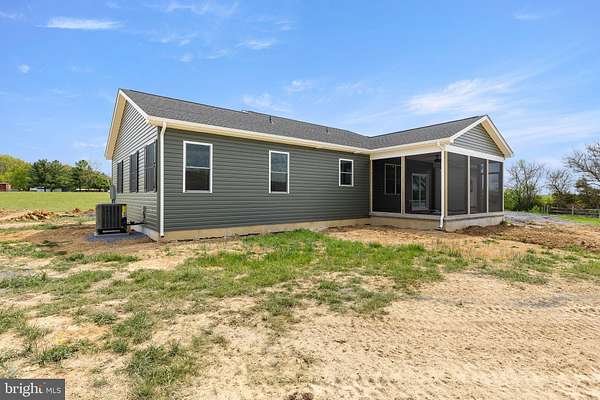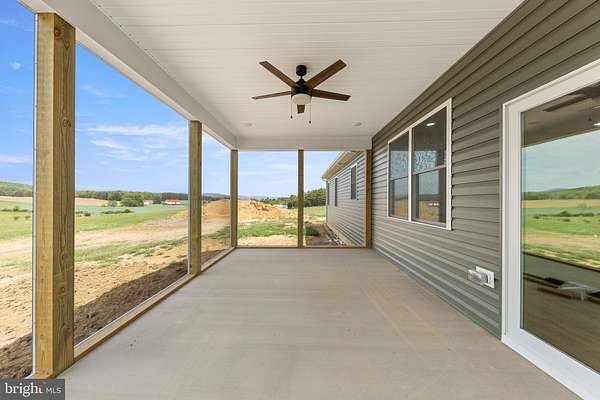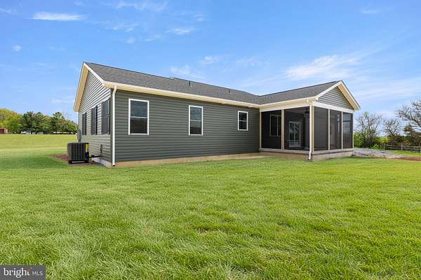 Nearly completed and absolutely stunning, this one-level home is perfectly situated on 5 acres with breathtaking pastoral and mountain views. Offering almost 2,000 sq. ft. of finished living space, this home blends comfort, style, and functionality throughout. Enjoy the scenery from the spacious 23' x 14' screened-in porch, ideal for relaxing or entertaining. Inside, you'll find a bright and open combination living and dining area, along with a beautifully appointed kitchen featuring white cabinetry, granite countertops, stainless steel appliances, and an undermount sink. The oversized garage provides ample space, while the large laundry room includes a pantry closet and convenient access to both the backyard and garage. The primary suite is truly exceptional, featuring a 22' x 16' bedroom, an expansive 8' x 15' walk-in closet with custom shelving and shoe storage, and a luxurious en-suite bath. The primary bathroom offers double vanities with quartz countertops, a center makeup vanity, a spacious 7' x 4' tiled walk-in shower with bench and glass doors, a private toilet room, and a large linen closet. The additional bathroom includes granite vanity top with undermount sink for a cohesive, upscale finish. The exterior is just as impressive, with a beautifully finished 10' x 30' covered concrete front porch-perfect for taking in the peaceful surroundings. This beautifully completed home offers the perfect blend of modern finishes, thoughtful design, and serene country living.