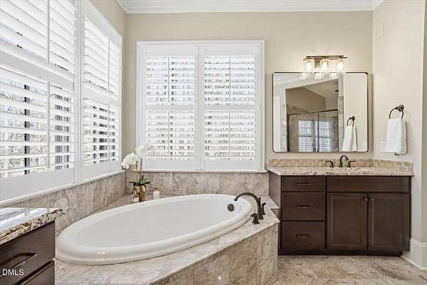 - Bar, Bathtub Only, Bathtub/Shower Combination, Bookcases, Built-In Features, Butler's Pantry, Ceiling Fan(s), Coffered Ceiling(s), Crown Molding, Double Vanity, Dual Closets, Entrance Foyer, Granite Counters, High Ceilings, Kitchen Island, Open Floorplan, Pantry, Primary Downstairs, Recessed Lighting, Separate Shower, Shower Only, Smooth Ceilings, Tray Ceiling(s), Walk-In Closet(s), Walk-In Shower, Water Closet
