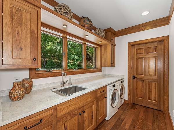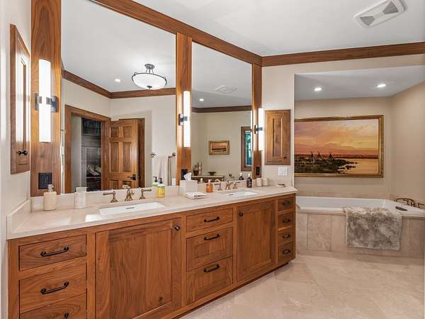 - Additional Living Quarters, Bath In Primary Bedroom, Dry Bar, Hot Tub Spa, Main Level Primary, Pantry, Sauna, Sound System, Wired For Sound