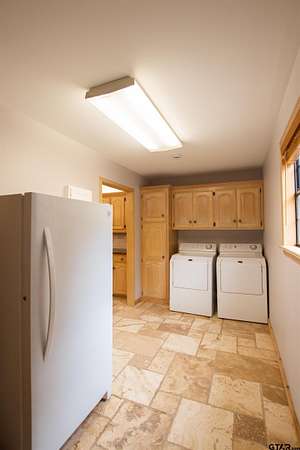 Tucked away on 8.624 peaceful acres just outside the city of Tyler, this charming 2-bedroom, 2-bathroom home with a 2-car garage offers 1,688 square feet of rustic comfort and modern convenience. Enjoy the privacy of country living while remaining just a short drive from all the shopping, dining, and amenities Tyler has to offer. Inside, the home features a warm and inviting open layout with beautiful hardwood and tile flooring throughout. The remodeled kitchen is both spacious and functional, offering ample counter space and storage while seamlessly connecting to the living areas--perfect for everyday living or entertaining. Large windows throughout the home fill the space with natural light and showcase peaceful views of the surrounding acreage. The living area is cozy and welcoming, highlighted by a wood-burning stove that adds character and warmth. Both bedrooms and bathrooms are generously sized, well-lit, and designed for comfort. A versatile bonus room provides additional space for a home office, hobby room, or guest area. Outside, the property is 100% fenced and cross-fenced, featuring improved pastures ideal for horses and other livestock. Additional highlights include a loafing shed and plenty of open land for animals, gardening, or outdoor enjoyment. With a fairly new roof, thoughtful updates, and a tranquil setting, this property offers the perfect balance of rustic charm, space, and convenience. Experience the best of country living without sacrificing access to the city--this one is truly a rare find.