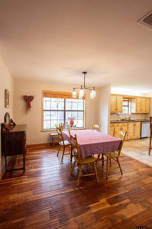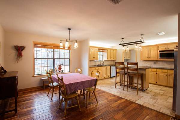 Tucked away on 8.624 peaceful acres just outside the city of Tyler, this charming 2-bedroom, 2-bathroom home with a 2-car garage offers 1,688 square feet of rustic comfort and modern convenience. Enjoy the privacy of country living while remaining just a short drive from all the shopping, dining, and amenities Tyler has to offer. Inside, the home features a warm and inviting open layout with beautiful hardwood and tile flooring throughout. The remodeled kitchen is both spacious and functional, offering ample counter space and storage while seamlessly connecting to the living areas--perfect for everyday living or entertaining. Large windows throughout the home fill the space with natural light and showcase peaceful views of the surrounding acreage. The living area is cozy and welcoming, highlighted by a wood-burning stove that adds character and warmth. Both bedrooms and bathrooms are generously sized, well-lit, and designed for comfort. A versatile bonus room provides additional space for a home office, hobby room, or guest area. Outside, the property is 100% fenced and cross-fenced, featuring improved pastures ideal for horses and other livestock. Additional highlights include a loafing shed and plenty of open land for animals, gardening, or outdoor enjoyment. With a fairly new roof, thoughtful updates, and a tranquil setting, this property offers the perfect balance of rustic charm, space, and convenience. Experience the best of country living without sacrificing access to the city--this one is truly a rare find.
