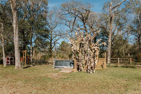 Experience the charm of country living in this 3 bedroom 2 bath ranch nestled on 1 1/2 acres. Located in a peaceful and private cul-de-sac just outside of Stagecoach, this unrestricted property is fully fenced, has an above ground pool, large storage shed, and a large shipping container workshop. Inside you will find a functional and inviting floor plan, large living with elevated ceilings and wood burning fireplace, and spacious kitchen with cabinets galore. Private primary suite with double sinks and walk in closet. Entertain friends & family relaxing to evenings under the stars or watching the deer and wildlife from your front porch. Low taxes with No MUD or HOA Fees. New well installed in 2022. Come and make this great property your new home today!!