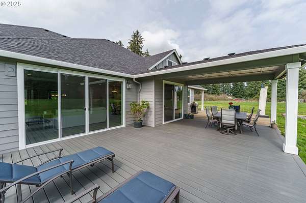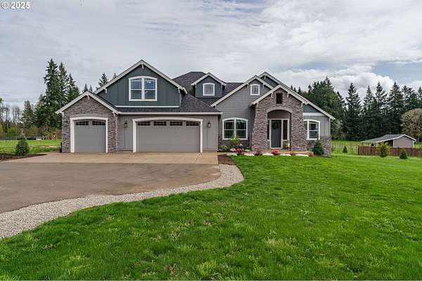 Secluded acreage lot neighborhood on a quiet cul-de-sac. This 4,013 Sq Ft Custom Home built by Garrette Custom Homes is only 2 yrs old and sits on 4.99 private acres in Oregon City. This could be your dream retreat-this stunning home offers 5 bedrooms, 4 full baths, open floor plan, double ovens, induction stove top, large island and beautiful natural light. The main floor primary suite has a large walk in shower, free standing soaking tub, walk in closet and double vanity. 2 additional bedrooms and bathrooms on the main floor make this home great for multi generational living. Upstairs you will find 2 additional bedrooms and a bathroom with space for lounging and study. Outside you will enjoy fruit trees, raised garden beds a tool shed, a whole home generator and tons of room to make this the property of your dreams. There is room for a pool, pickle ball court, beautiful landscaping, gardens, whatever you can dream up. This Oregon City stunner delivers exceptional quality inside and out.