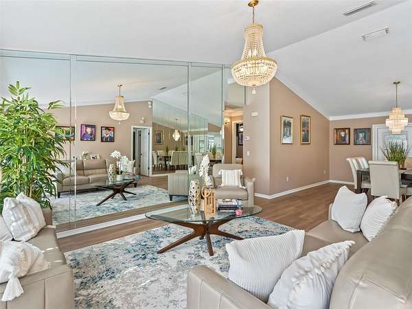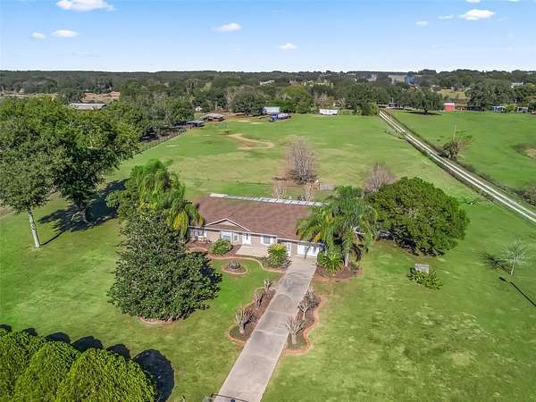 Nestled on 3.11 acres of lush, verdant land in beautiful Weirsdale, Florida, this exceptional property offers the perfect blend of tranquility, privacy, and endless possibilities. Zoned A1, the land invites your imagination to run free; create your dream farm, bring your favorite animals, or even design your own personal petting zoo. A stunning 360-degree backdrop of green landscape surrounds the home, complete with tall palm trees, mature leafy trees, and naturally sculpted greenery that forms a living privacy fence from the main road. The property is fully fenced for added convenience. Step inside this 3-bedroom, 2-bathroom split floor plan home, where tall ceilings and elegant mirrored accent walls immediately brighten the living and dining areas with abundant natural light. Beautiful luxury vinyl plank floor flow throughout the house. The chef-inspired kitchen is a true showstopper, featuring recessed lighting, magnificent quartz countertops and backsplash, white cabinetry with crown molding, a built-in wine rack, wall oven and microwave, stainless steel appliances, and a range with hood. A cozy bar area offers the perfect spot for a quick bite. Adjacent to the kitchen is a versatile flex room--ideal as a TV room, office, hobby space, or whatever suits your lifestyle. The spacious owner's suite boasts a generous walk-in closet and an ensuite bathroom with a beautifully tiled shower. On the opposite side of the home, two additional well-sized bedrooms share a stylish guest bathroom with a glass-enclosed, tiled shower and quartz vanity. From the dining room, double doors open to a welcoming covered lanai, your private retreat for outdoor living. Complete with an outdoor kitchen and ample seating space, this area is perfect for hosting afternoon gatherings, weekend cookouts, or simply unwinding while taking in the serene beauty of your expansive fully fenced backyard. Enjoy peace of mind with this move-in-ready home, featuring a newer 2022 roof, security system, new water heater, water filtration system, and a well-maintained AC unit from 2015. The property has been thoughtfully cared for, offering comfort and reliability from day one. Furniture is also available for purchase separately, making your transition even more seamless. A rare opportunity to enjoy peaceful country living without sacrificing modern comfort this property is ready to bring your dreams to life. Ideally located, this home is surrounded by beautiful lakes and is just minutes from Lake Weir and its charming lakefront eateries. You're also only a short drive from The Villages, offering a wide selection of restaurants, shops, and conveniences including Sam's Club, Walmart, and Home Depot. Enjoy peaceful, tranquil living while still having every essential comfort and amenity close by--truly the best of both worlds. Call TODAY and schedule your personal tour!