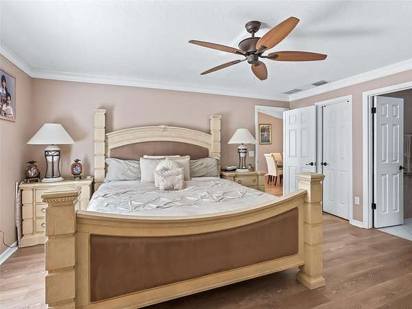 - Cathedral Ceiling(s), Ceiling Fans(s), Crown Molding, High Ceilings, Living Room/Dining Room Combo, Primary Bedroom Main Floor, Split Bedroom, Stone Counters, Thermostat, Walk-In Closet(s), Window Treatments