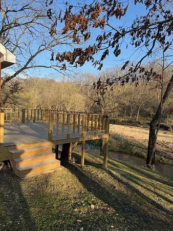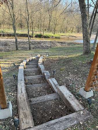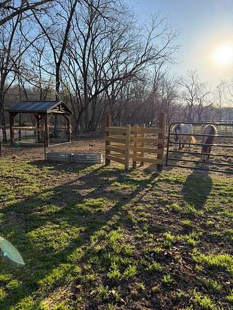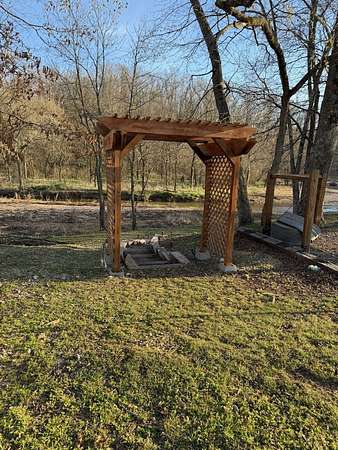 Rare opportunity in the Spavinaw Creek Valley with Spavinaw Creek running the length of the property. Natural springs help feed the creek with year-round water flow. Home offers recent updates and new architectural shingle roof in 2020. Outdoor features include 17 x 35 inground pool with large patio, 16 x 30 pavilion, detached shops, multiple outbuildings, and separate electric-powered cabin with large deck overlooking the creek. Land includes fenced pasture for livestock, wooded acreage, open field areas, and recreation trails. Custom fencing, lighted posts, and electric gate openers add convenience. Timber stairs provide creek access. Frequent wildlife sightings with seasonal eagles along the creek corridor. Located 14 miles from Downtown Bentonville.