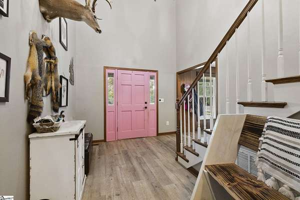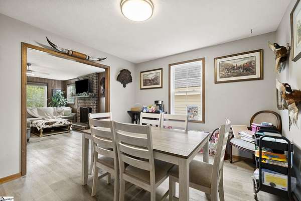 Discover the perfect blend of country charm and city convenience! This 4 bedroom, 2 bath home boasts space, comfort, and character--plus a huge detached garage/workshop and no HOA. Bring your chickens and more--there's plenty of room to enjoy the outdoors! A wide Southern-style front porch sets the scene for rocking chairs and friends. Inside, you'll find a traditional layout with a spacious living area featuring a wood-burning fireplace, a dining room ready for gatherings, and a generous kitchen. The main floor primary suite includes a walk-in closet, attached bath, and private sunroom for morning coffee or evening relaxation. Upstairs, three bedrooms share a hall bath, along with a massive walk-in laundry room that could easily double as a craft room or flex space. Step out back to a large deck that overlooks the private property and features ample room for grilling, dining, or simply unwinding. The fenced-in area is perfect for kids and pets, while the surrounding land provides space to roam, garden, or explore in peace. Current sale is for 2.64 acres with up to 10 acres available for purchase.