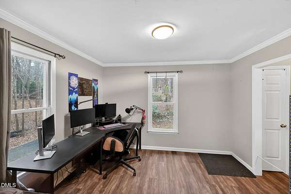 Located in one of Raleigh's most desirable areas, this 4-bedroom, 3.5-bath home offers a flexible floor plan and a quiet, private setting close to nearby scenic trailheads. Two downstairs bedrooms create options for guests, extended living, or a dedicated work-from-home space, while the main living areas provide room to gather and entertain. A full unfinished basement that already has electrical, heating and air adds significant additional space and opens the door for future expansion, recreation, or storage. Think home gym, game room, media space, or additional living area tailored to your lifestyle. With generous square footage beyond the main living areas, this home offers the freedom to shape spaces that fit the way you live today and tomorrow. Two primary suites provide separation and privacy, making the layout adaptable for a variety of lifestyles. Set in a peaceful location surrounded by nature, the home feels tucked away while still offering convenient access to Raleigh amenities. The home sits on more than 2 acres of wooded land, offering a rare sense of privacy and space in Raleigh. Mature trees surround the property, creating a peaceful setting that feels removed from the road and neighboring homes. Whether you envision outdoor entertaining, quiet mornings on the porch, or simply enjoying the natural backdrop year-round, the land provides both beauty and breathing room that is increasingly hard to find. For buyers looking for space, privacy, and the chance to personalize a home in a prime location, this property presents a unique opportunity.