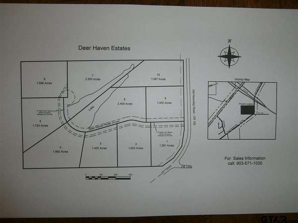 From the intersection of Hwy 155 and Loop 323, head south on Hwy 155 toward Lake Palestine. Turn left at the Loop 49 access road then take the first right onto Old Noonday Rd. (if you merge onto Loop 49, you've past it). Lot 10 will be on the right before you pull into the Deer Haven Estates Gate.