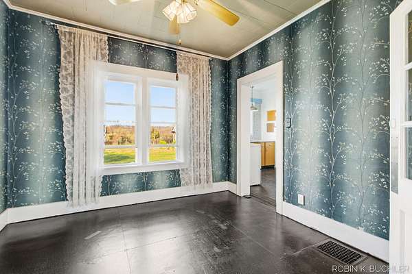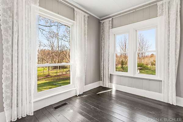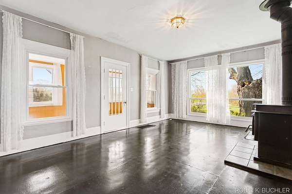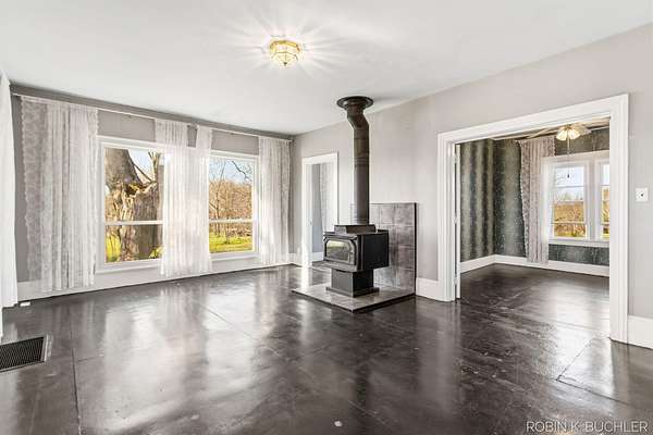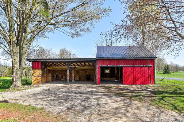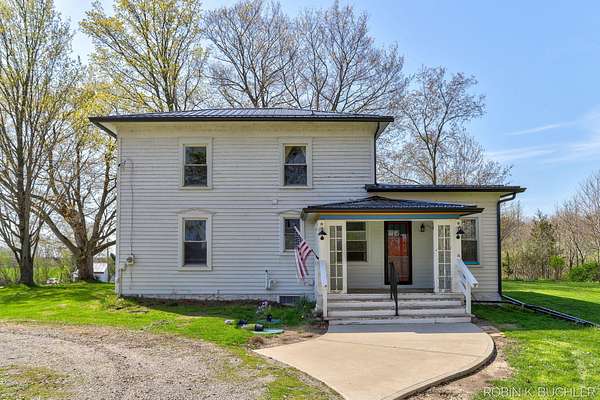 Nestled in the heart of the countryside, this 1864 farmhouse and property offer a unique blend of historic charm and modern comfort, all set on 7.68 acres of beautiful ground. Many fruit trees and bushes, full of plantings to enjoy! Great outdoor living and gardening! Most of the hard work has been done. Now it is your turn to add your beauty! New roof on yellow guest house-2015. All new windows throughout the house-2015. Big windows in front room and downstairs bedroom-2023, Add't windows in downstairs bedroom, inside backdoor, and kitchen-2015, Original 1864 barn wrapped in metal and new metal roof (original inside structure reworked/supports)-2016, Foundation improvements in the basement by Ayers-2021, Attic and upstairs add't insulation-2021, Internal sealing to reduce air drafts and heat loss-2021, Metal roof on house-2024, All outlets exchanged to GFI's-2024, Repaired septic system-2025, New septic drain field (total of two septic drain fields)-2025, New furnace-2026. Sold AS IS