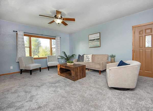 Discover the perfect blend of comfort, versatility and country charm with this affordable acreage! This inviting 4 bedroom, 1.5 bath home offers plenty of space for everyday living and entertaining. You will love the mud room space as you enter the home leading into the updated kitchen designed with style and functionality and all appliances included. The bright living/dining room is sure to please with sliders leading to the deck. The flex room features the laundry and there is room for office space or playroom as well. Lots of built in storage and half bath round out this level. The upper level features primary bedroom with fireplace and lots of natural light. Three good sized bedrooms with walk in closets and full bath complete this level. A standout feature is the flexible bonus space, ready to suit your lifestyle as a game room, home office, workout space, or even small business. The large 3 stall heated building provides abundant room for vehicles, hobbies and storage. This home can be heated with propane or wood and is very efficient. Don't miss this great opportunity!